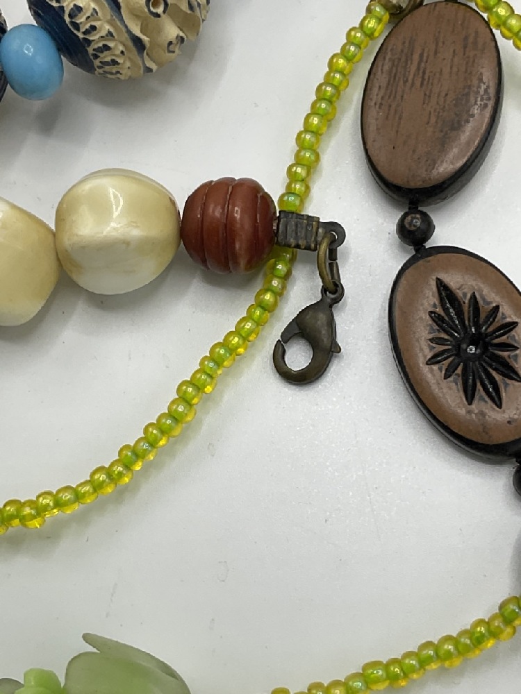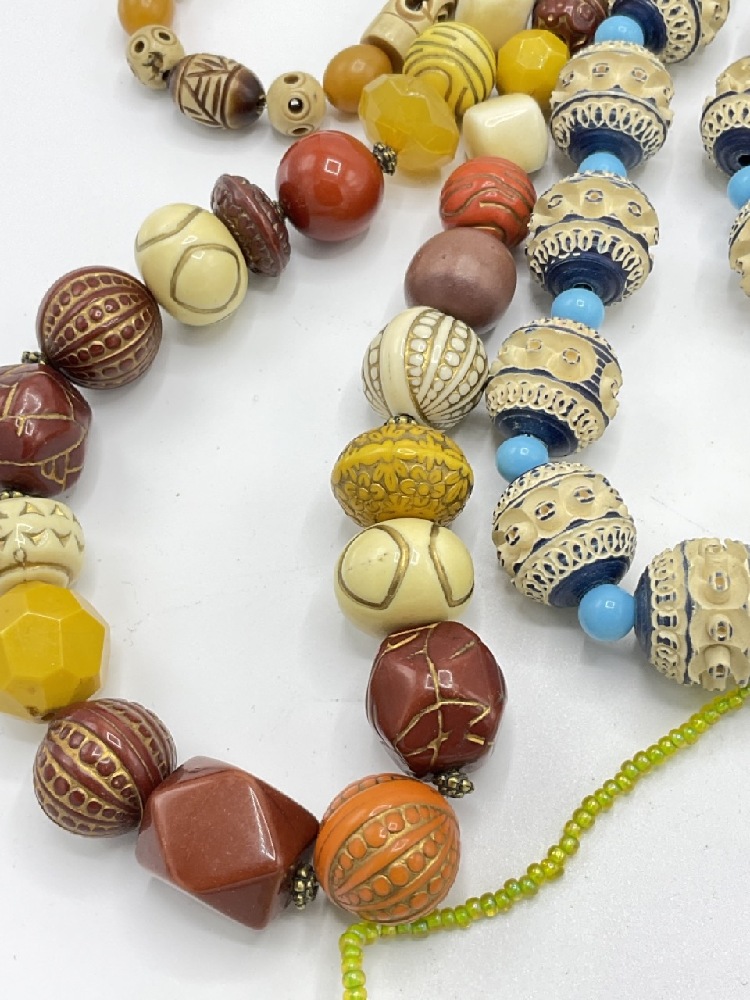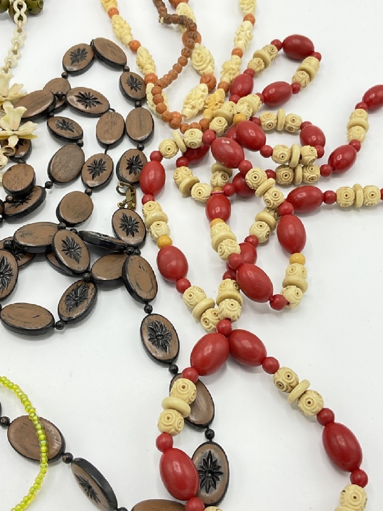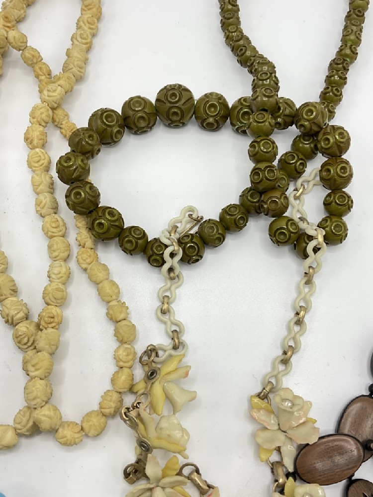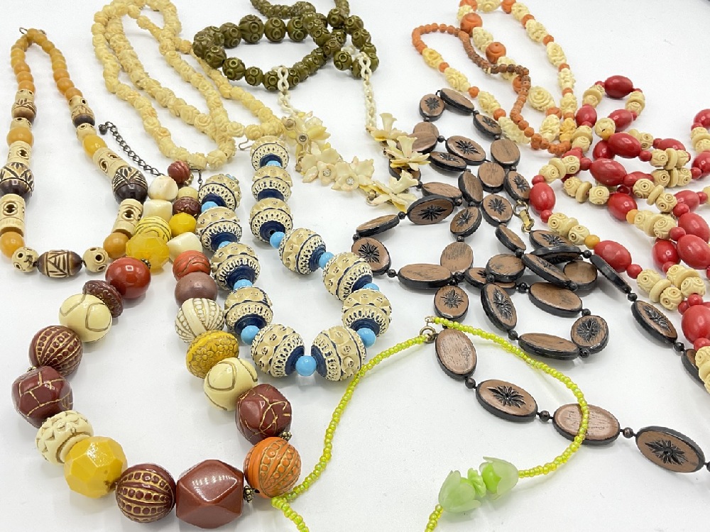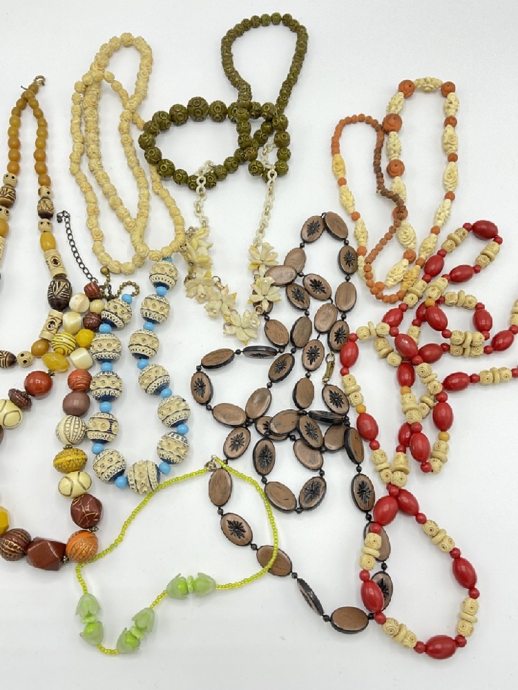 Ten (10) Vintage Carved Bakelite necklaces.