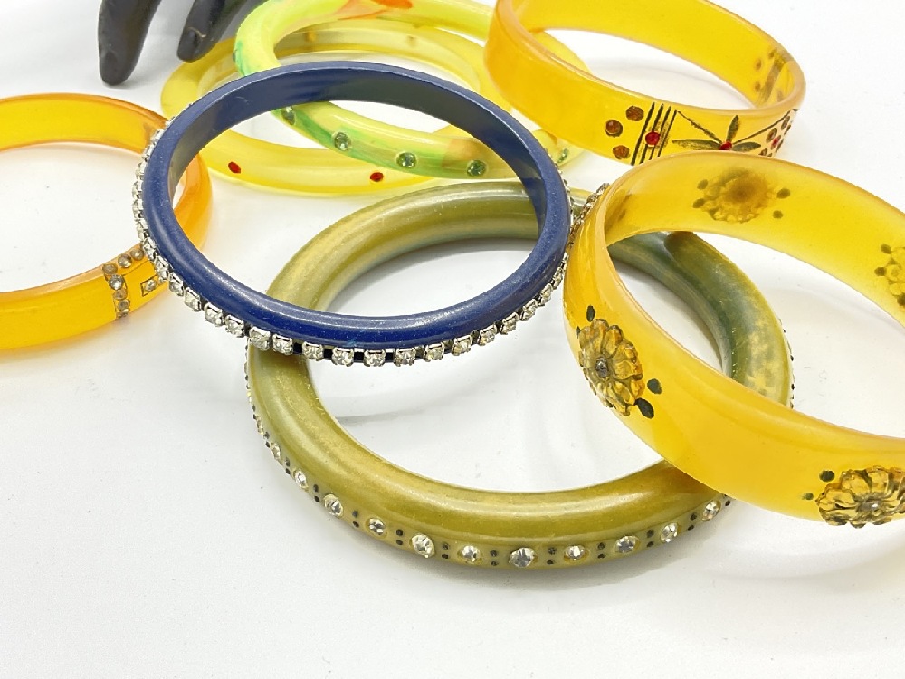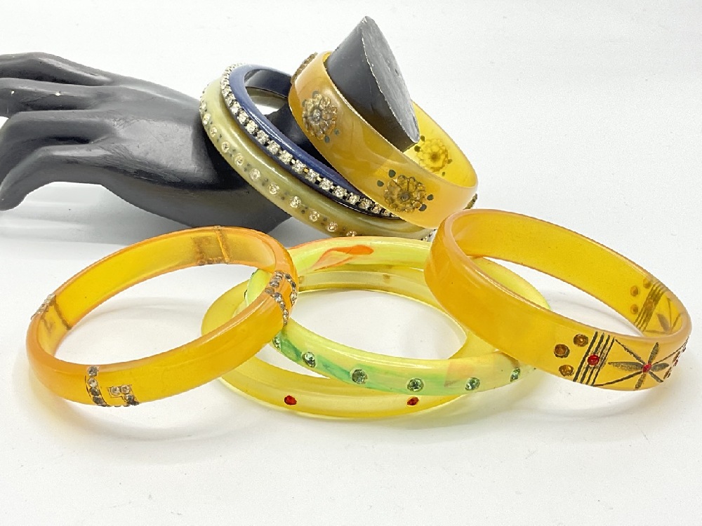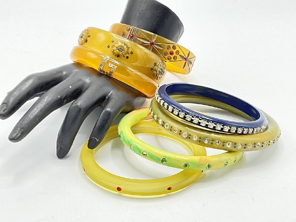 Seven (7) Vintage Jeweled Bakelite Bangle Bracelets