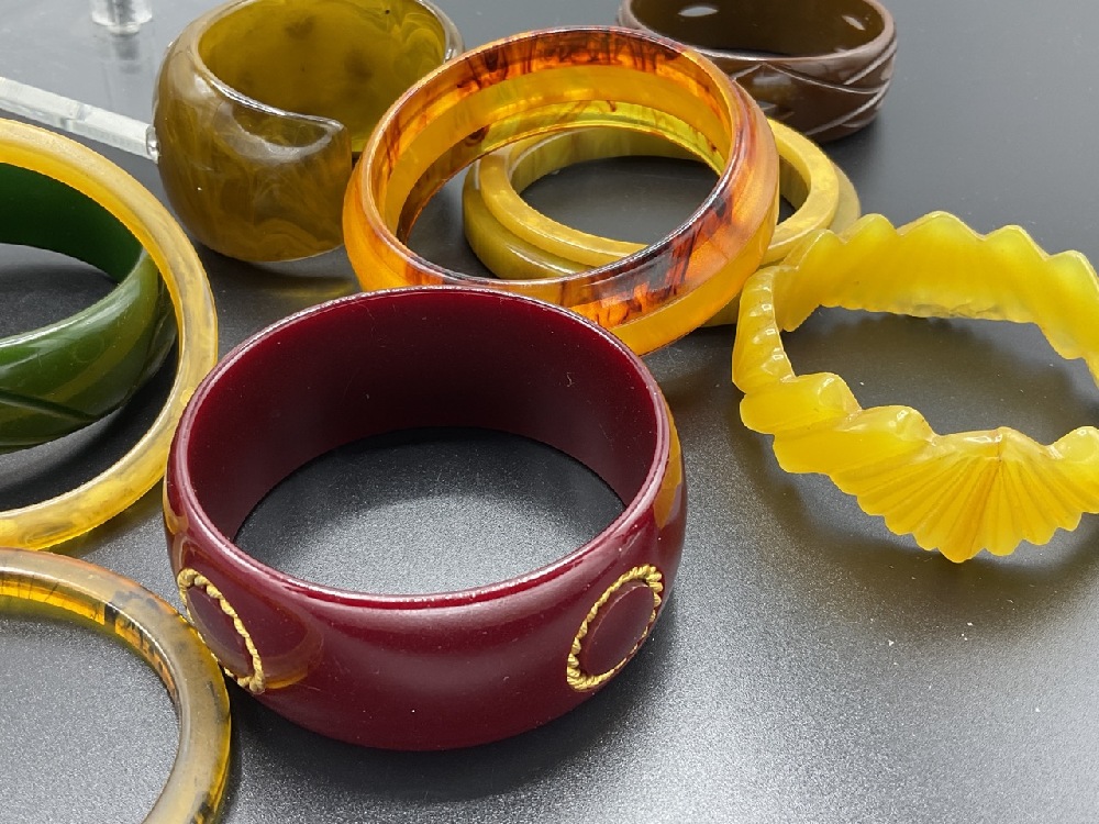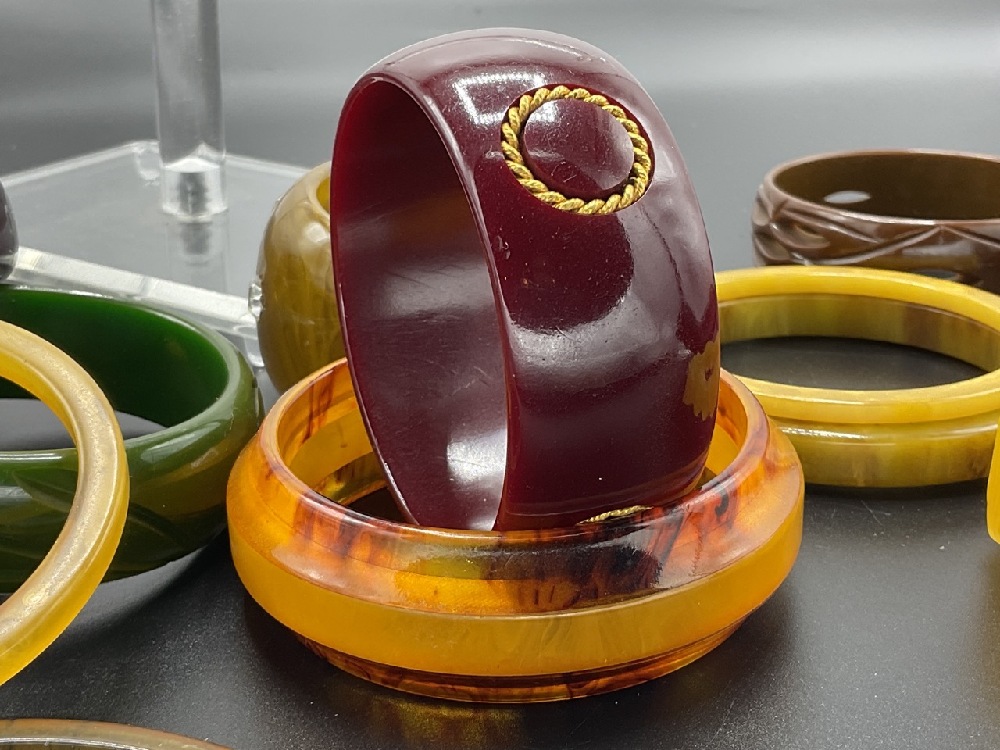 Twelve (12) Bakelite Bangle and Cuff Bracelets.