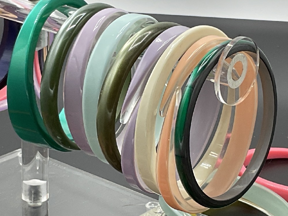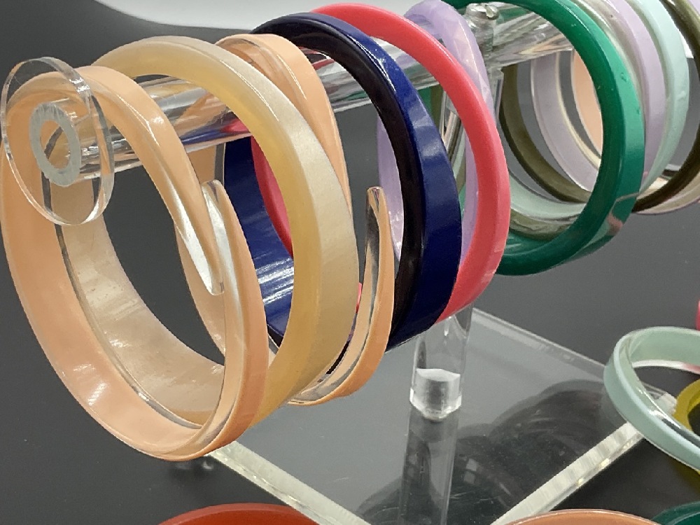 Twenty-Six (26) Vintage Plastic and Lucite fashion bangle bracelets. Not Bakelite.