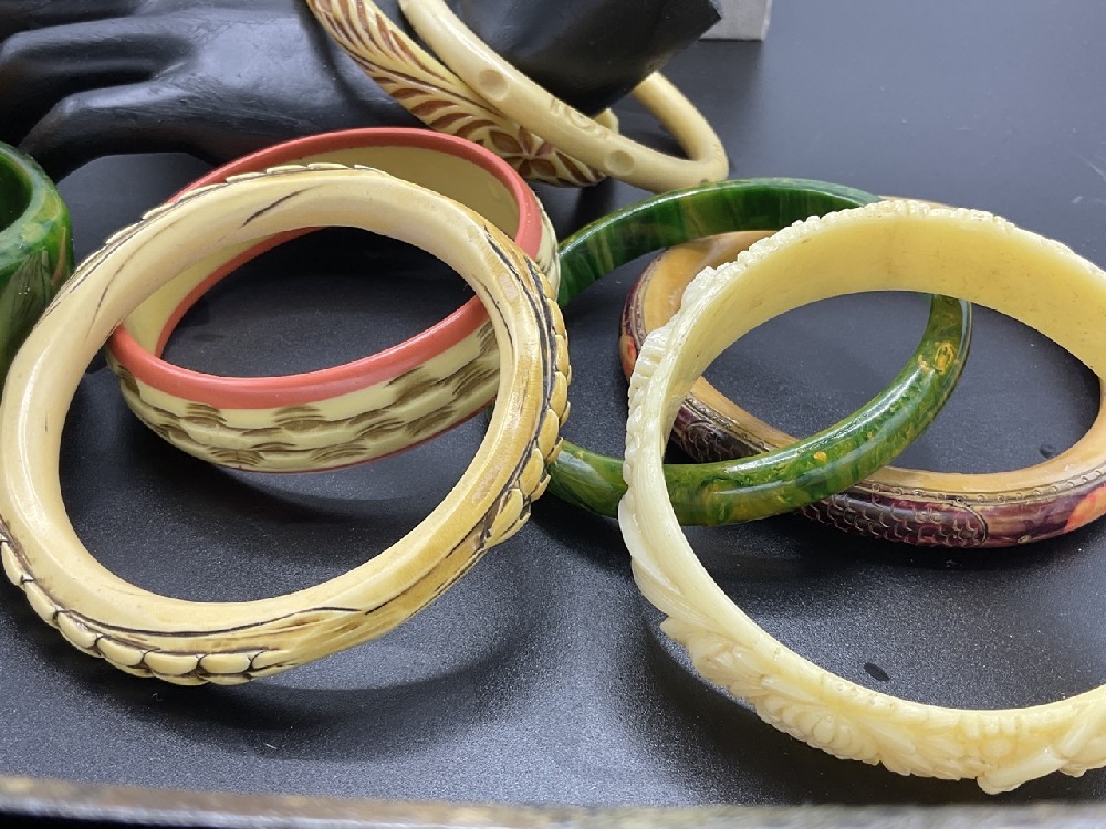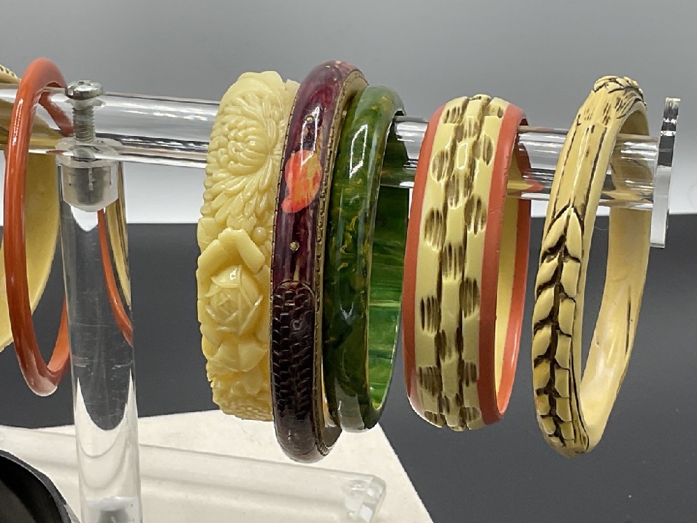 Flannery's has been contracted to sell a Lady's collection of Bakelite jewelry and accessories of which she has acquired over the last four decades. Many purchases were made by reputable jewelry dealers, country antique shops and New York City auction houses. Selling with no reserves. Please explore the catalog carefully and preview the lot images for some great Bakelite finds. Join us In Person at the auction house or Online here at www.flannerysestateservices.com. All property will ship In-House!