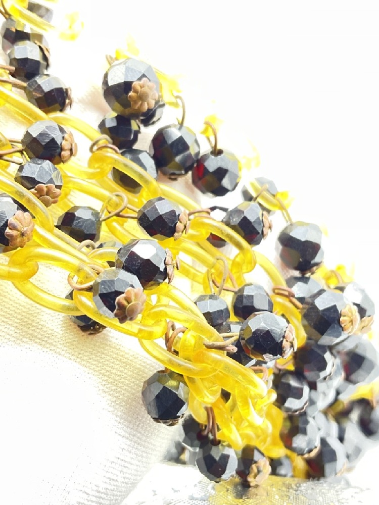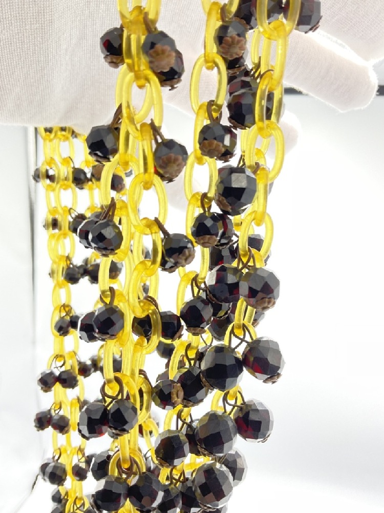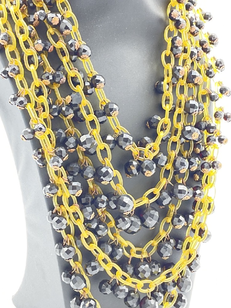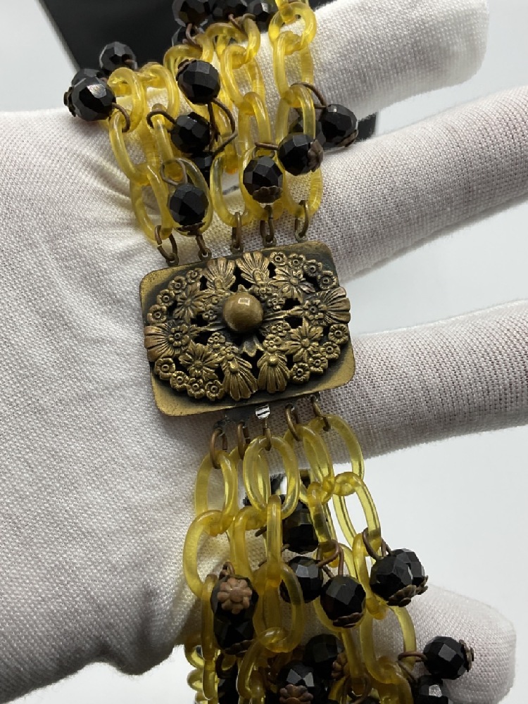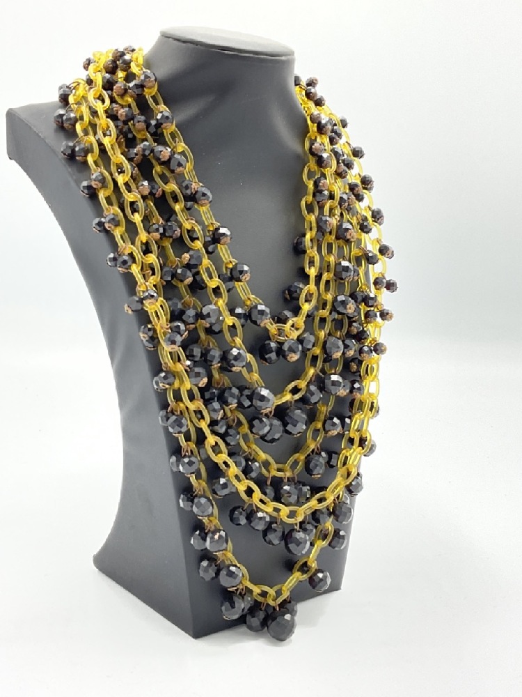 Magnificent five strand cherry amber and yellow Bakelite necklace. Early design and showing in very good condition.