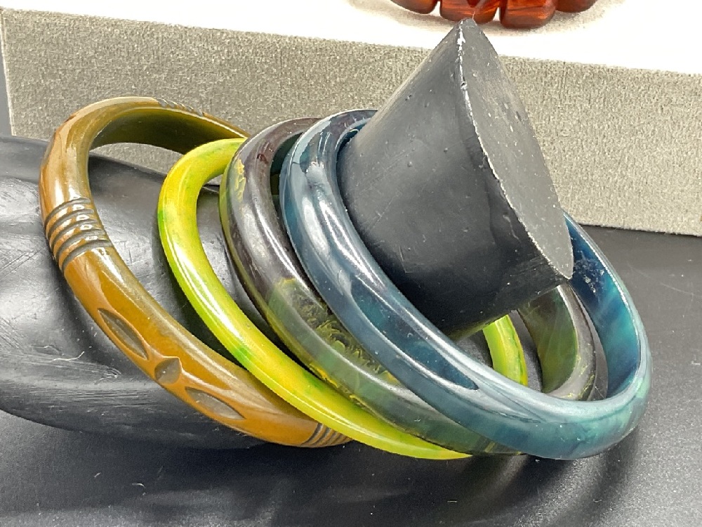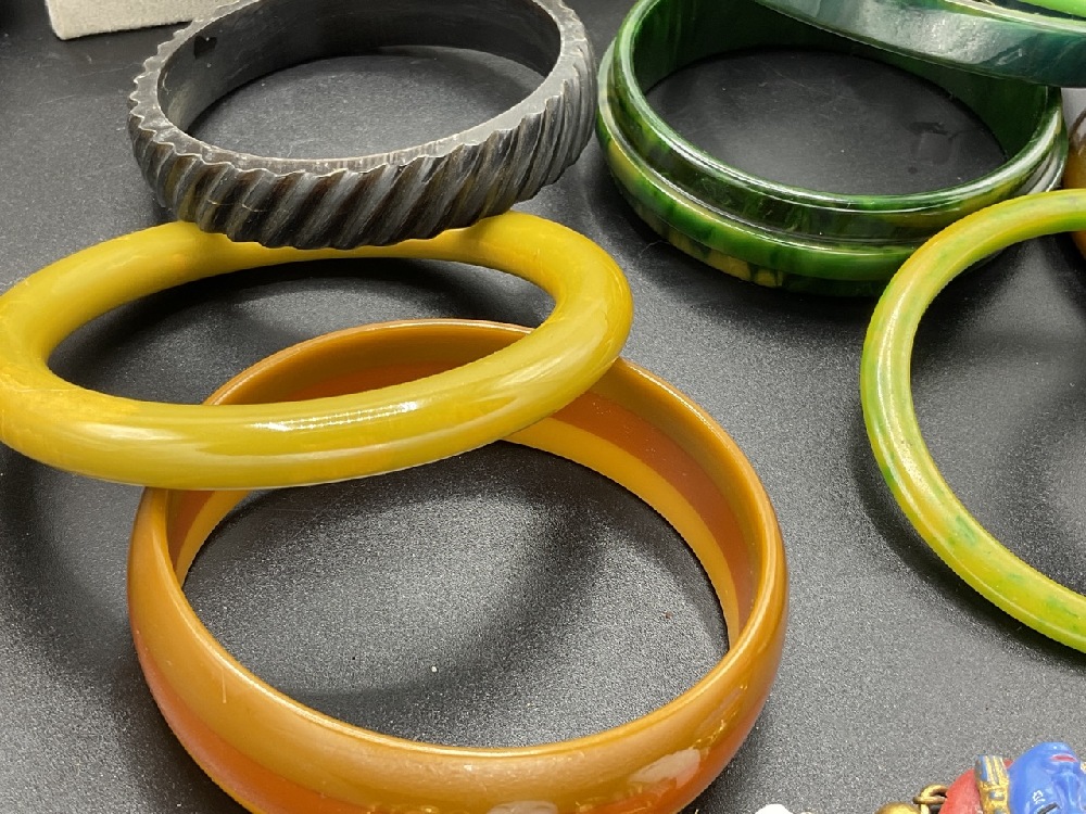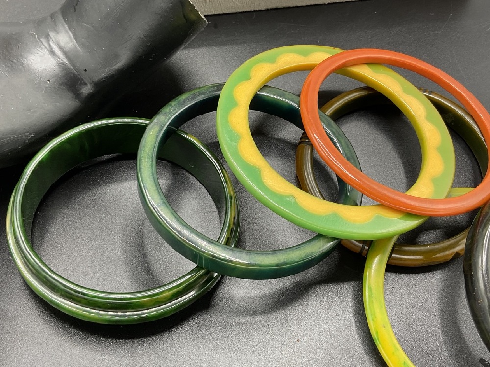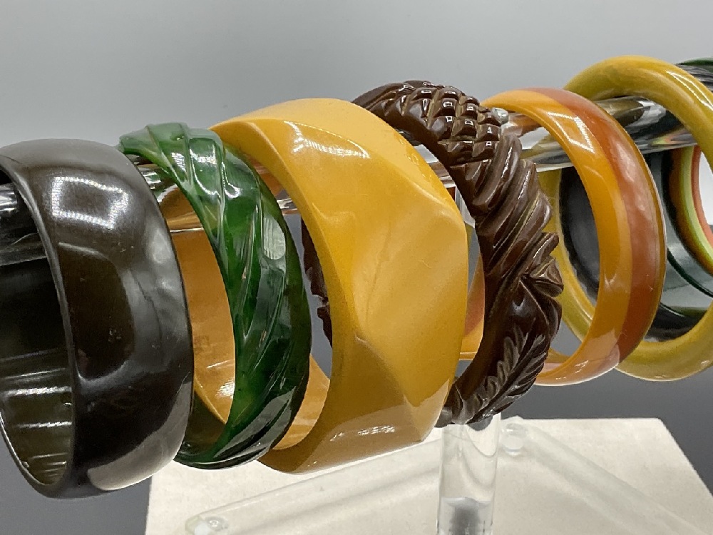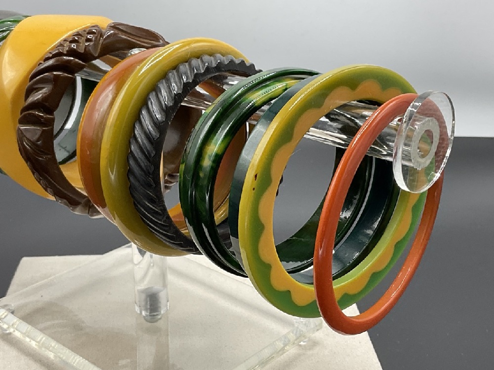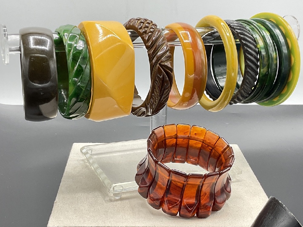 Sixteen (16) Vintage Bakelite Bangle Bracelets. Butterscotch, Tortoise, Greens, Creamed Spinach etc.