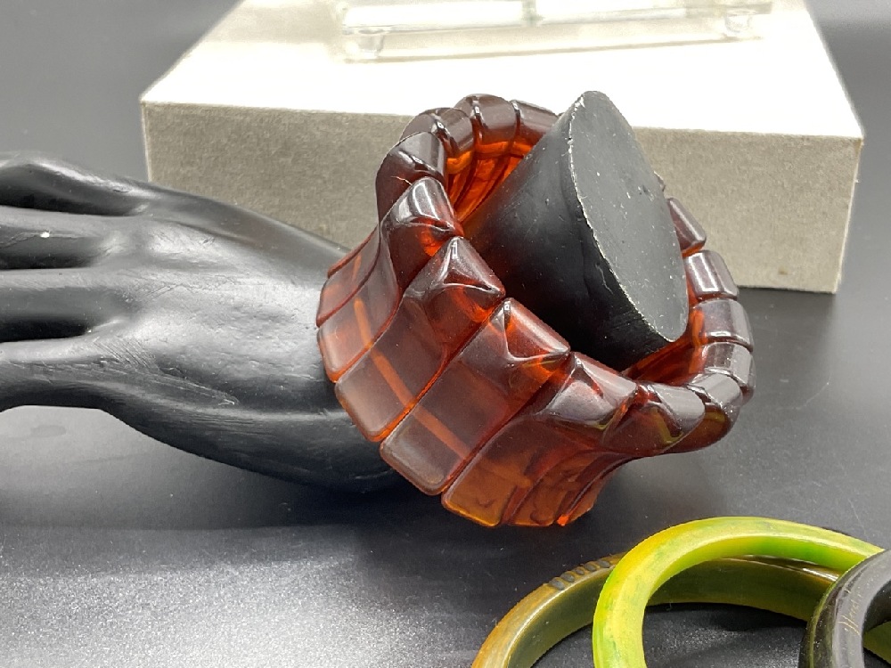 Flannery's has been contracted to sell a Lady's collection of Bakelite jewelry and accessories of which she has acquired over the last four decades. Many purchases were made by reputable jewelry dealers, country antique shops and New York City auction houses. Selling with no reserves. Please explore the catalog carefully and preview the lot images for some great Bakelite finds. Join us In Person at the auction house or Online here at www.flannerysestateservices.com. All property will ship In-House!