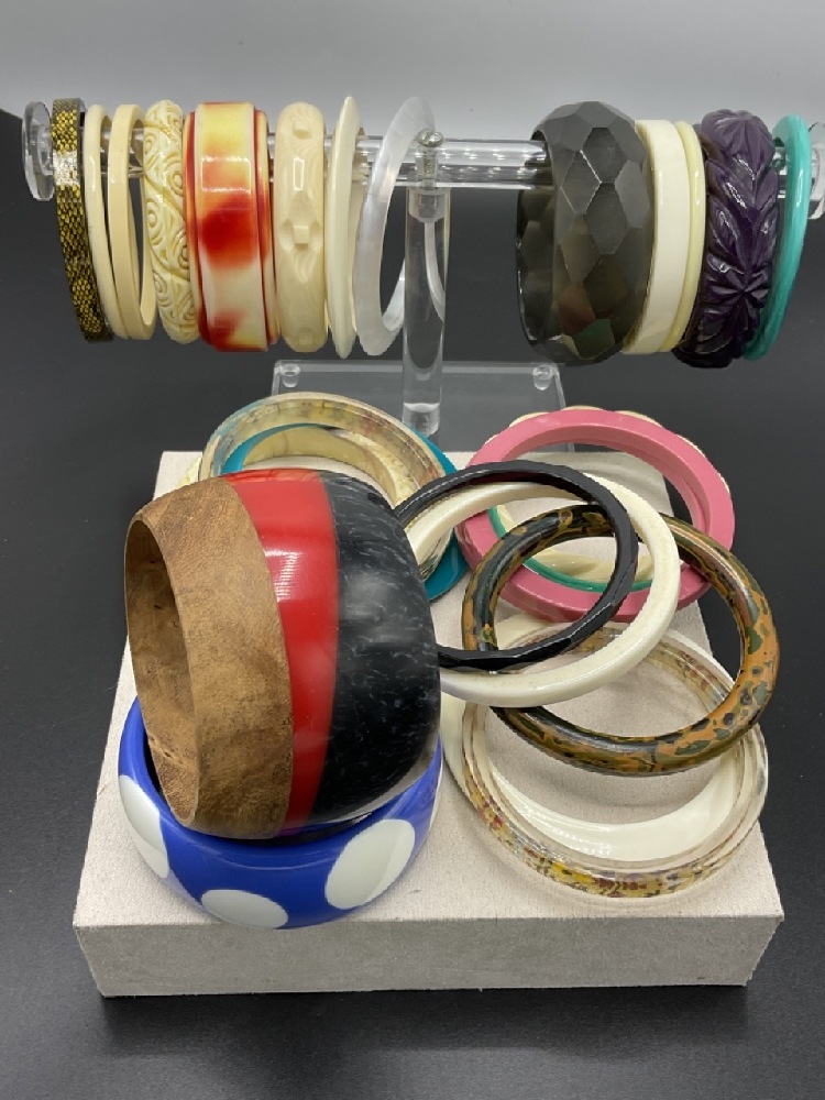 Twenty Four (24) Vintage And Contemporary Plastic Bangles.