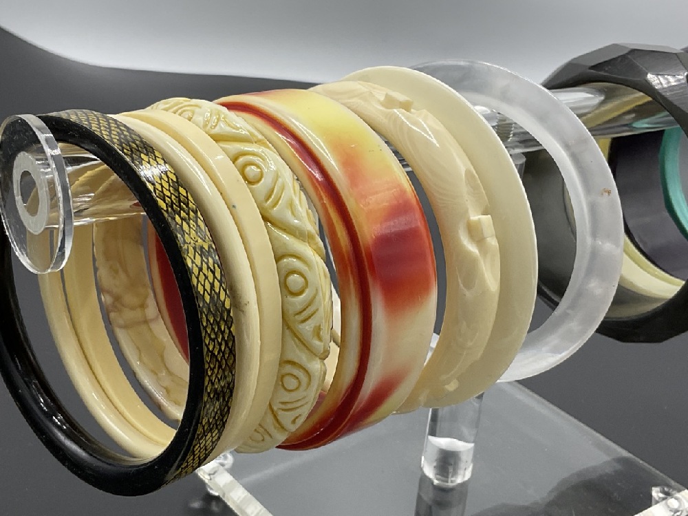 Flannery's has been contracted to sell a Lady's collection of Bakelite jewelry and accessories of which she has acquired over the last four decades. Many purchases were made by reputable jewelry dealers, country antique shops and New York City auction houses. Selling with no reserves. Please explore the catalog carefully and preview the lot images for some great Bakelite finds. Join us In Person at the auction house or Online here at www.flannerysestateservices.com. All property will ship In-House!
