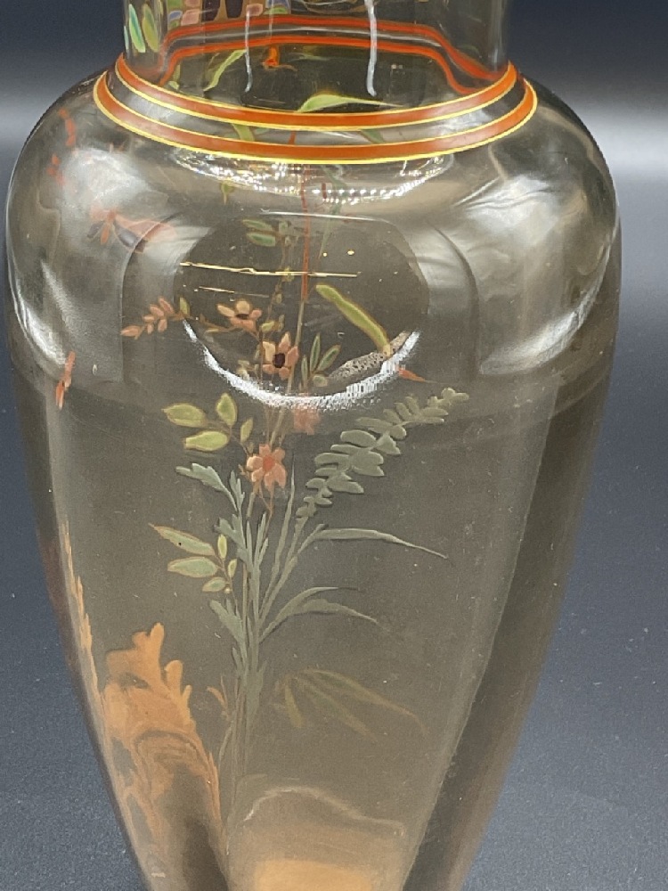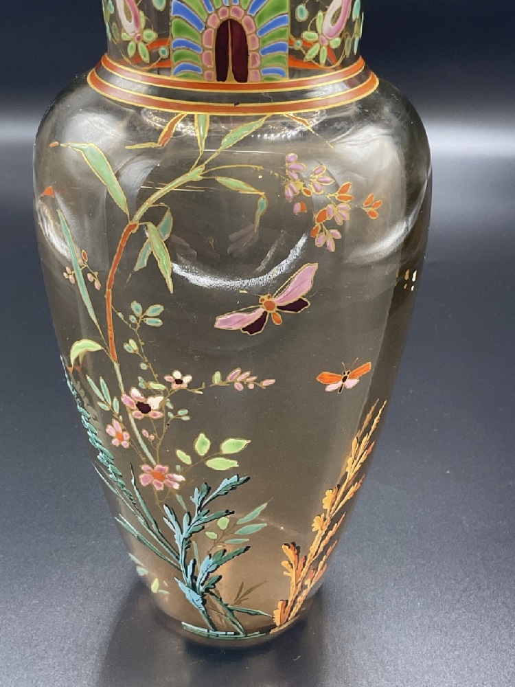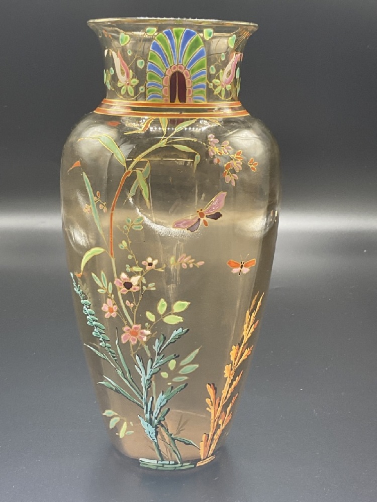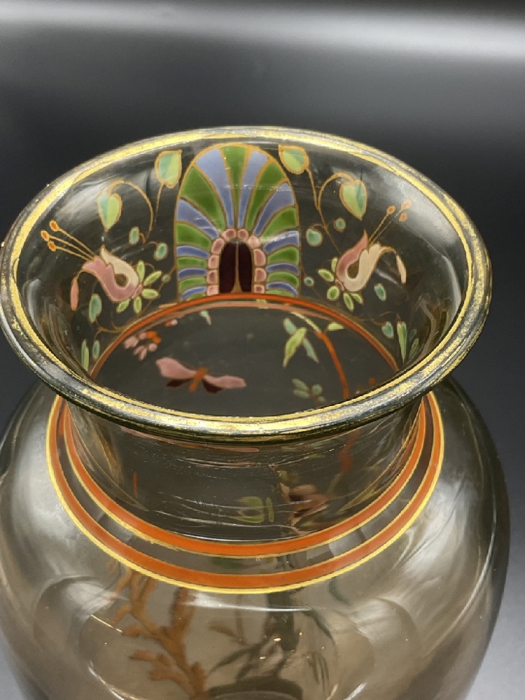 An fine art glass enameled glass vase. Early 1900's in the manner of Moser or Galle. Unsigned.