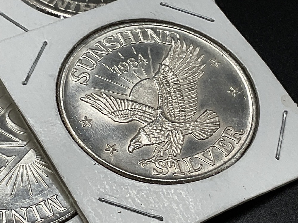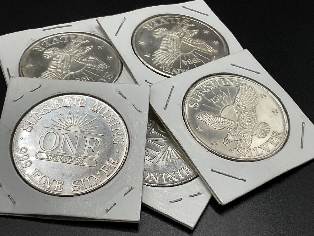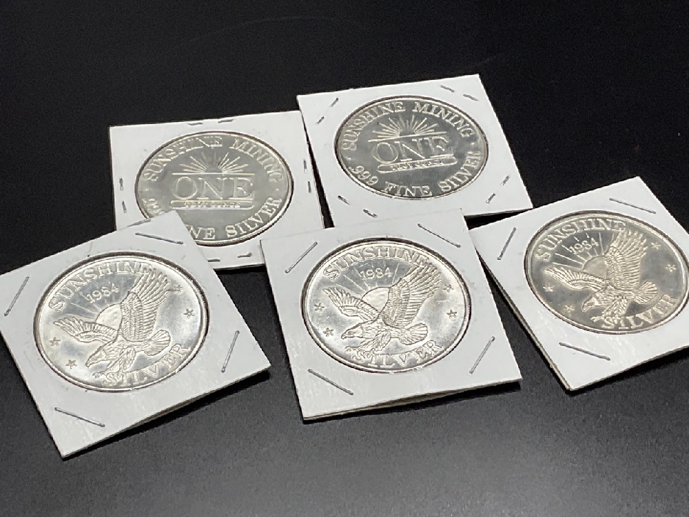 Five (5) Sunshine Silver Buillion 1984 .999 Pure Silver.