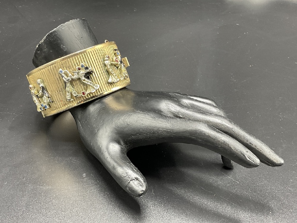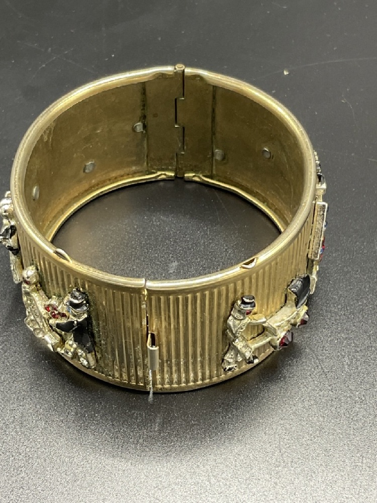 Vintage Retro Circle Of Life 40's or 50's Costume Jewelry Hinged Bracelet.
