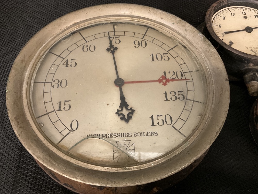 Five (5) Gauges. Levelometer, U.S. Gauge Company High Pressure Boiler etc. As seen in photograph preview.