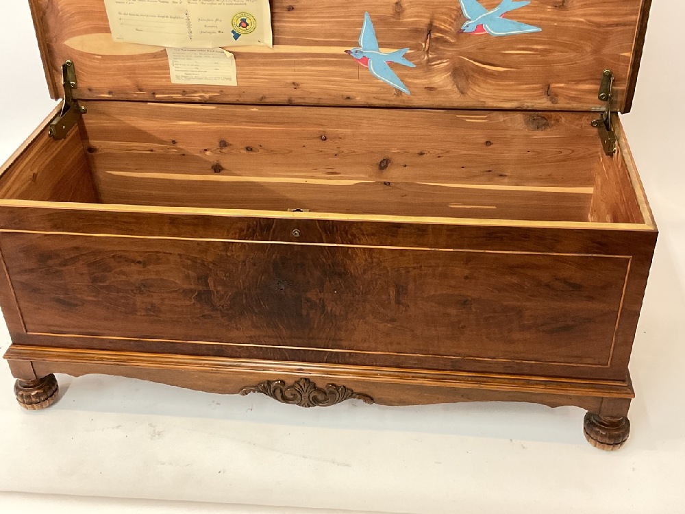 Gillingham Bluebird Cedar Chest. Very fine condition. Cedar lined interior with walnut veneered exterior.