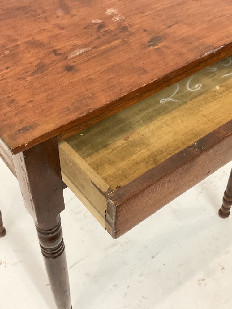 19th c. American One Drawer Table. Pine hardwood. Used in foyer entrance with a table lamp set on top.