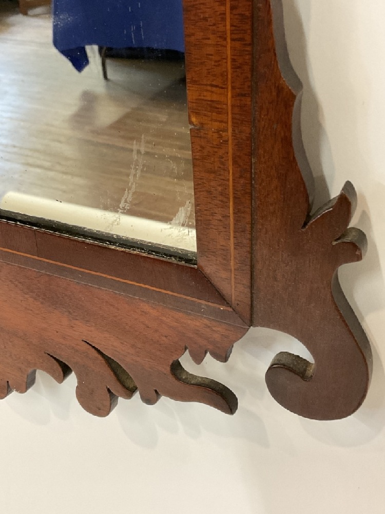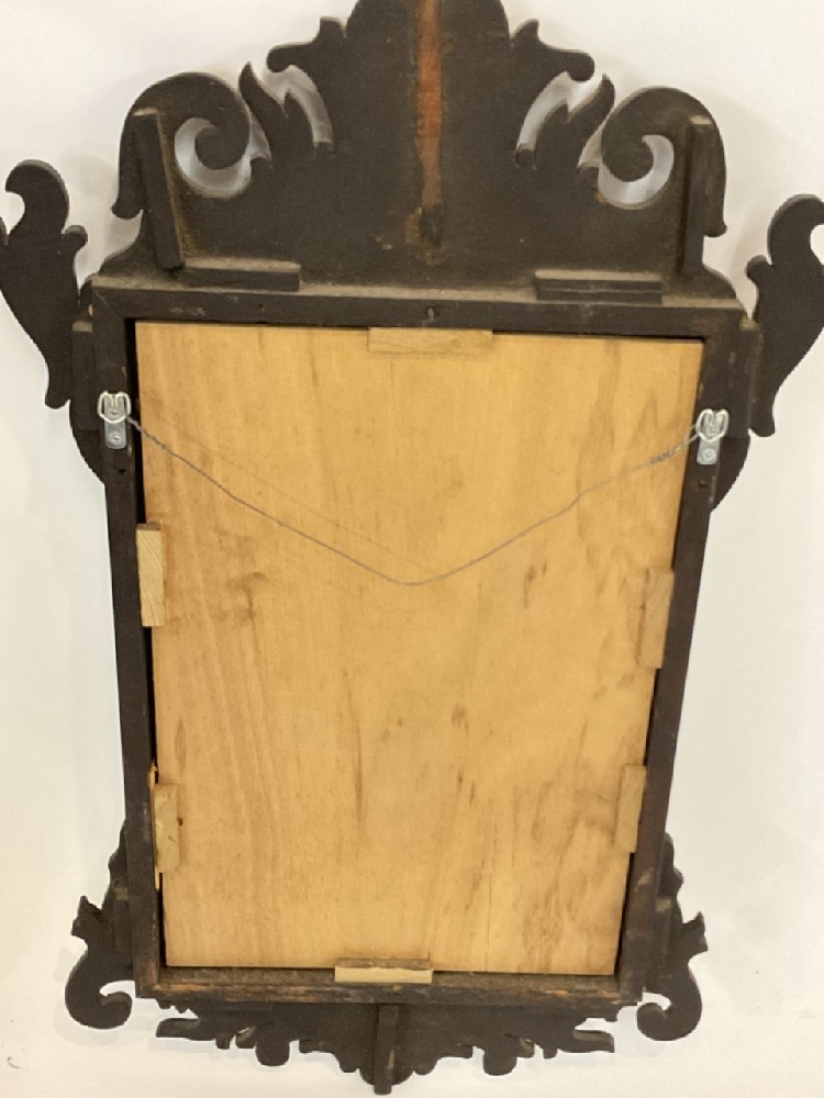 Chippendale style hallway wall mirror. Mahogany hardwood. Reinforced later backing. Overall very good.