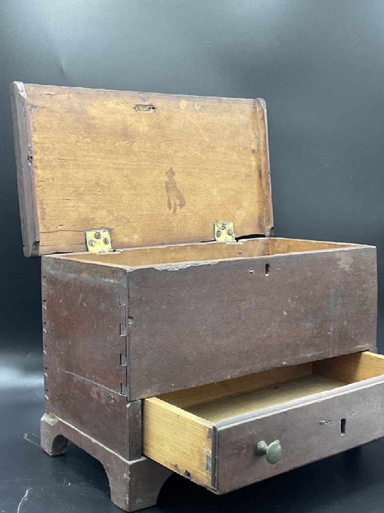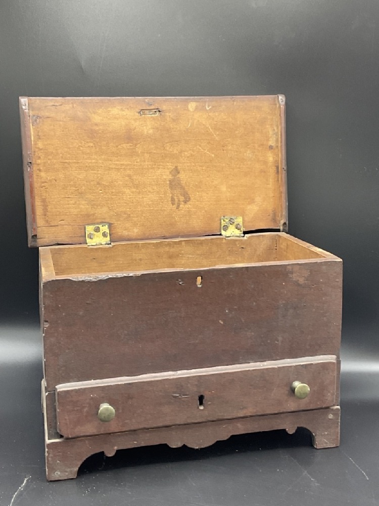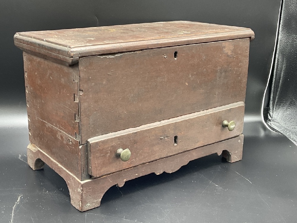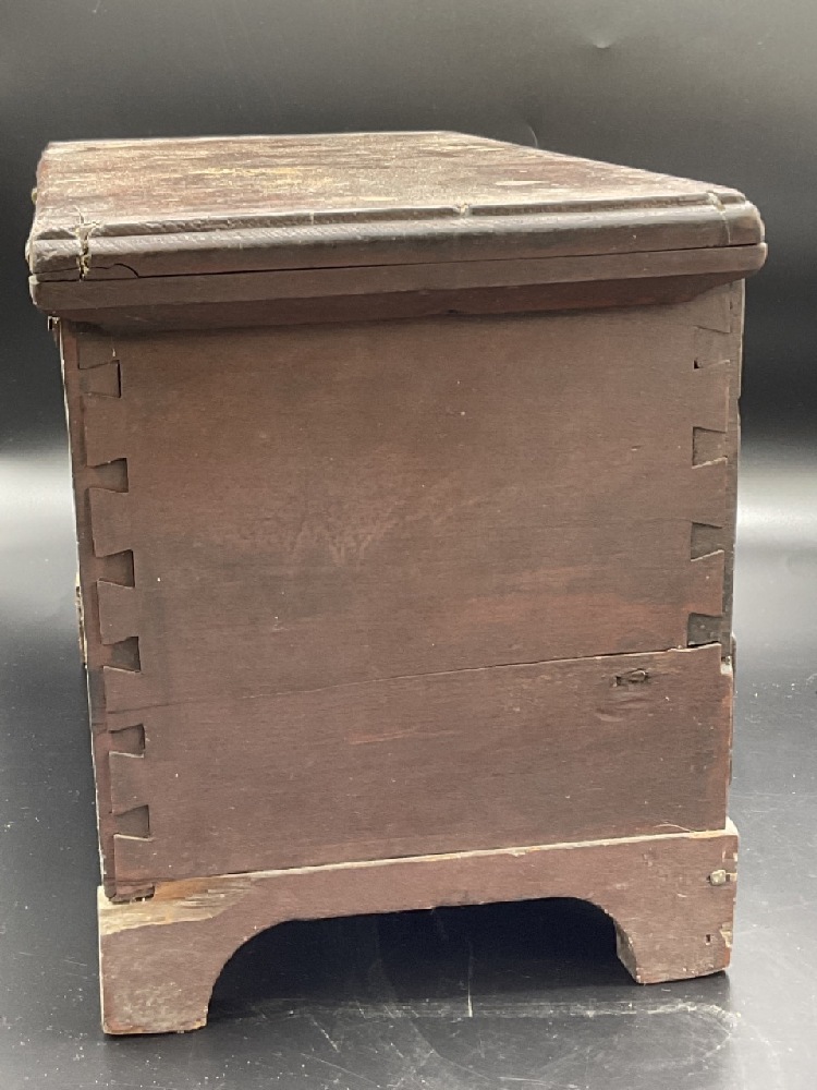 19th c. Miniature pine wood blanket chest.