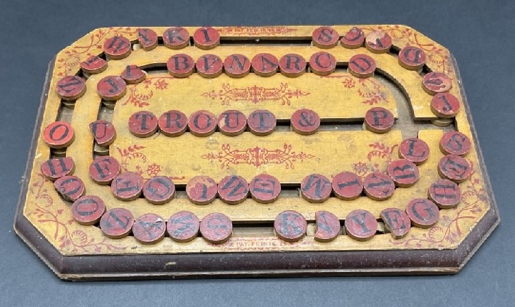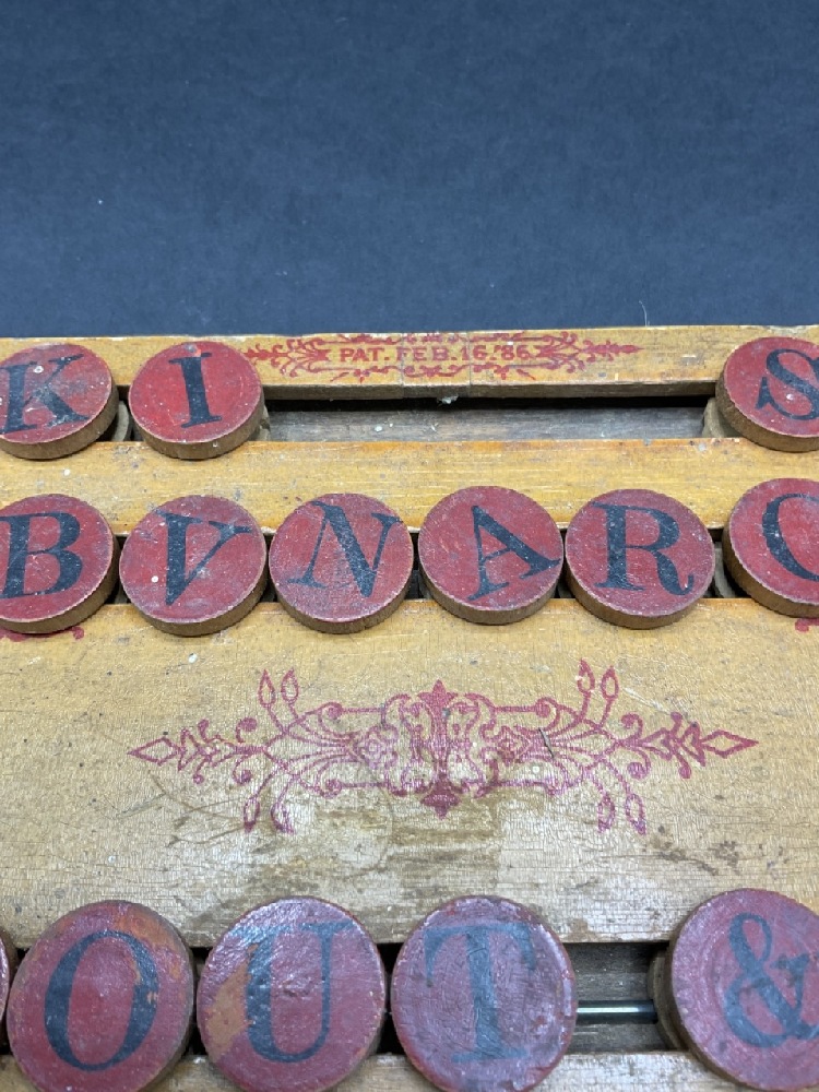An American child's spelling board. Patented Feb. 16, 1886.
