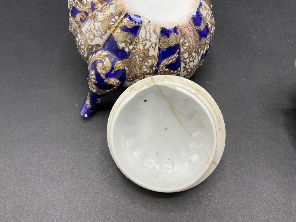 Antique Japanese cobalt blue and gold moriaged decorated and hand painted porcelain tea set.