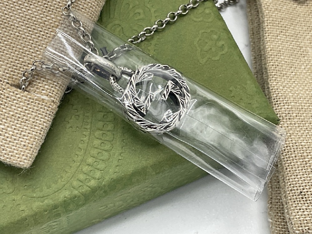 Gucci Sterling Silver "G" Logo Necklace, Pristine boxed and brand new.