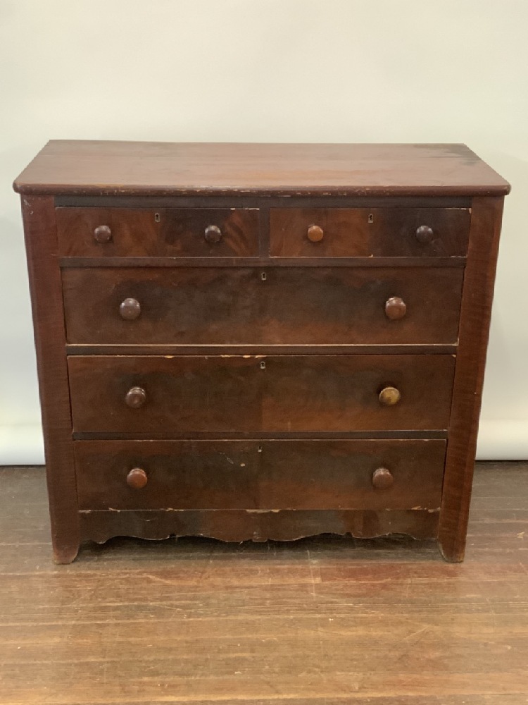 Two over three pine chest of drawers.