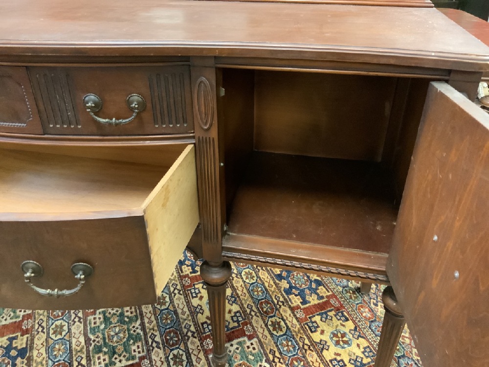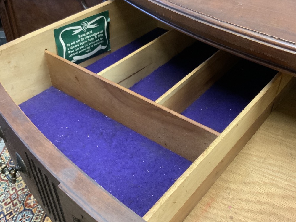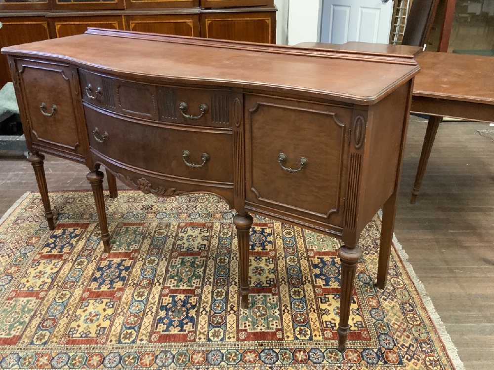 Ameircan mahogany sideboard accompanied with a matching "D" end dining room table with 24" leaf.