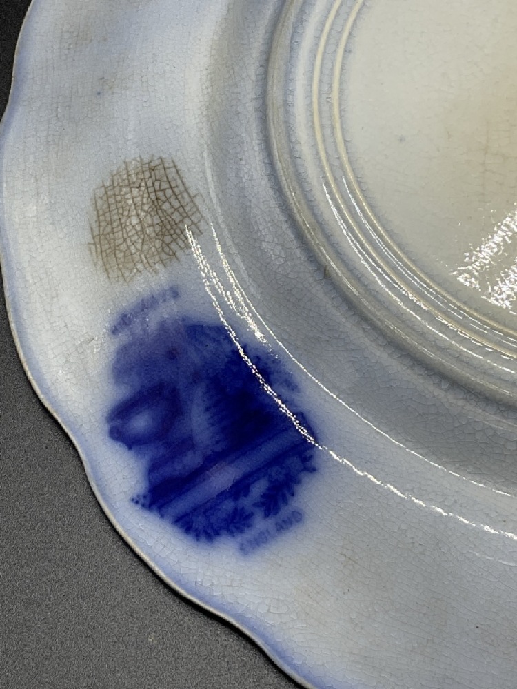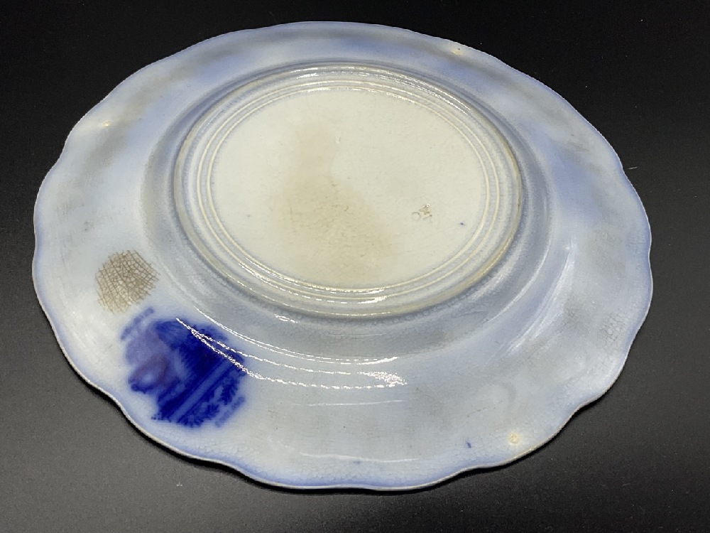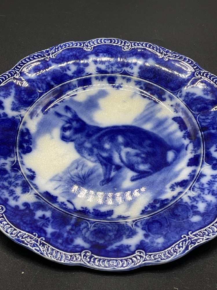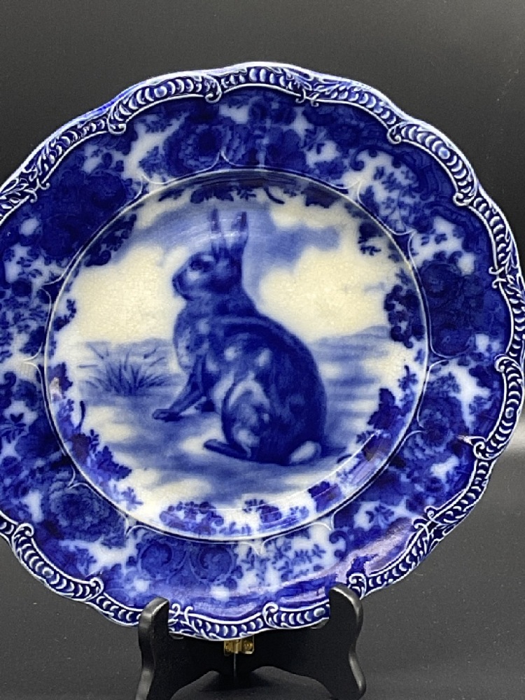 Rare 19th century Ridgeways Flow Blue Bunny Rabbit English Porcelain Dinner Plate.