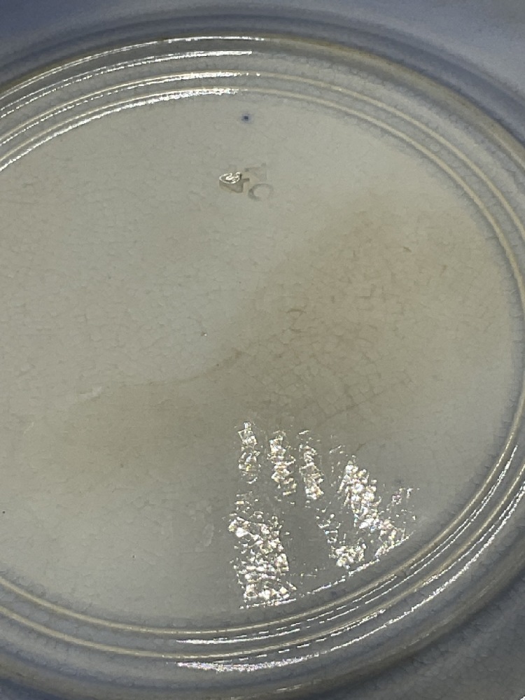 No chips or cracks, minor crazing consistent to age and even. A heat discoloration seen at back of plate not affecting the front. Excellent coloring. Please see photograph preview or call.