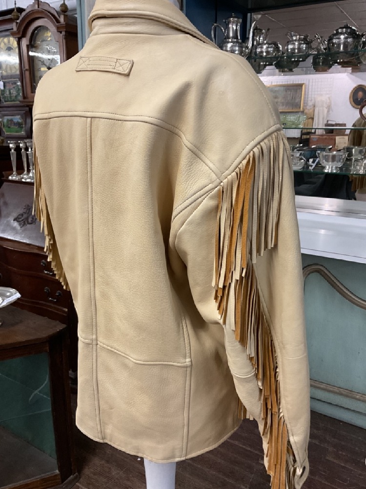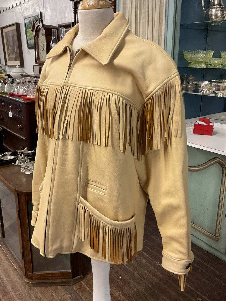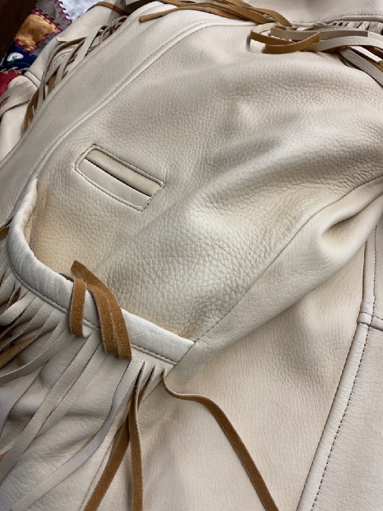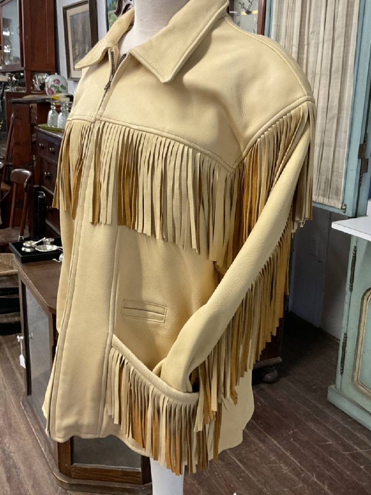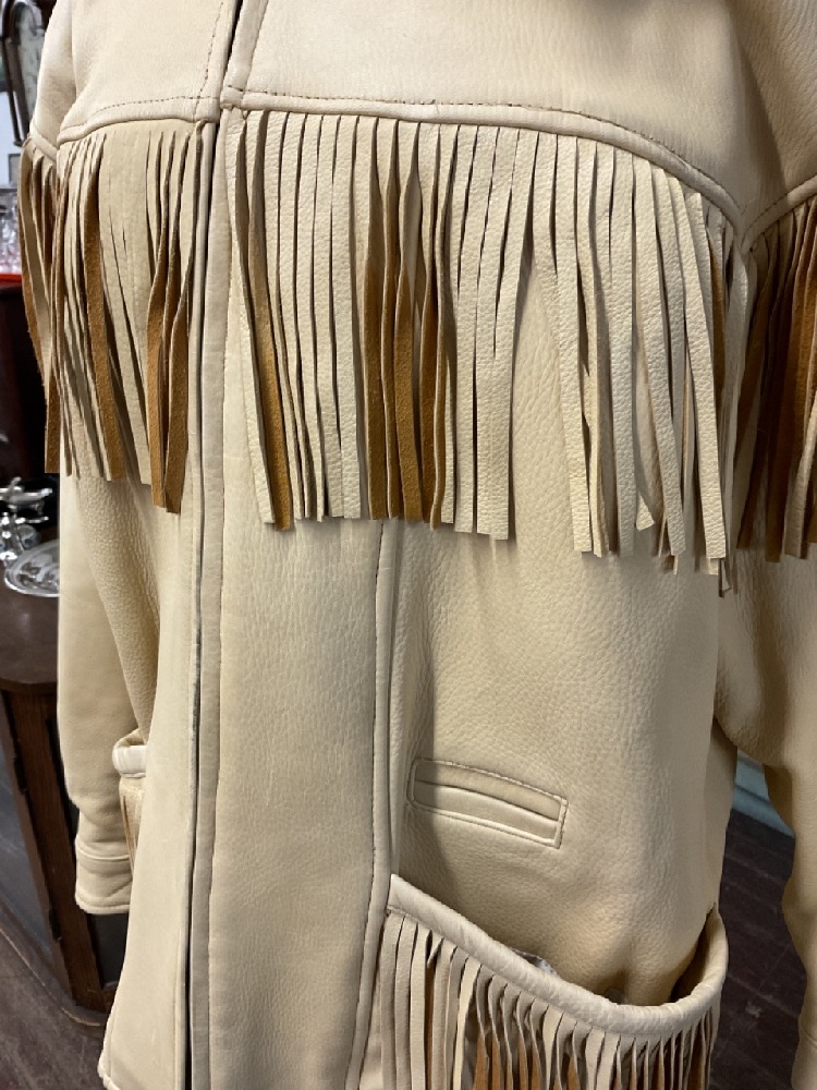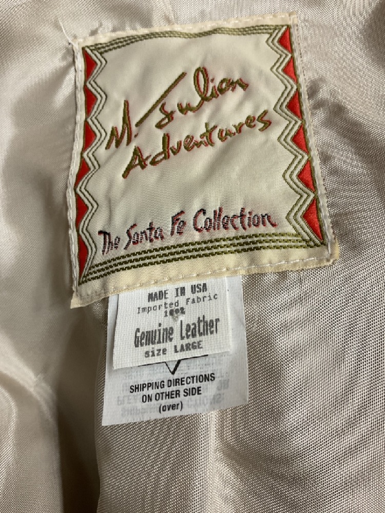 Vintage M. Julian Adventures "The Santa Fe Collection" leather fringed jacket. Cream color two tone. Size Large.