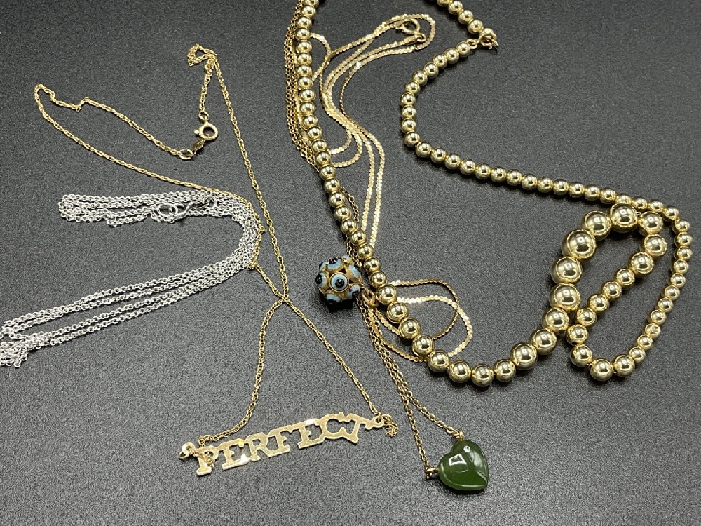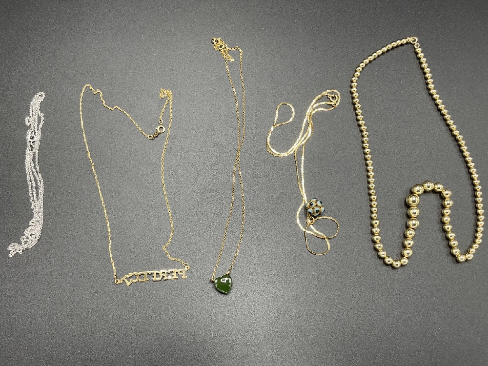 Five (5) assorted 14K gold necklaces.