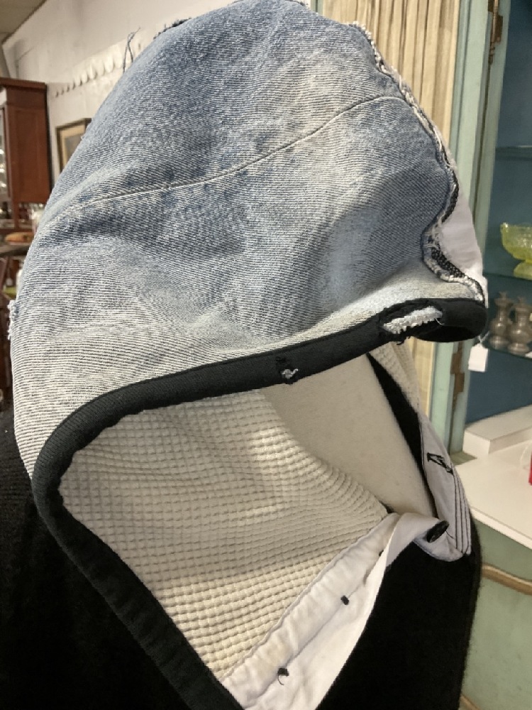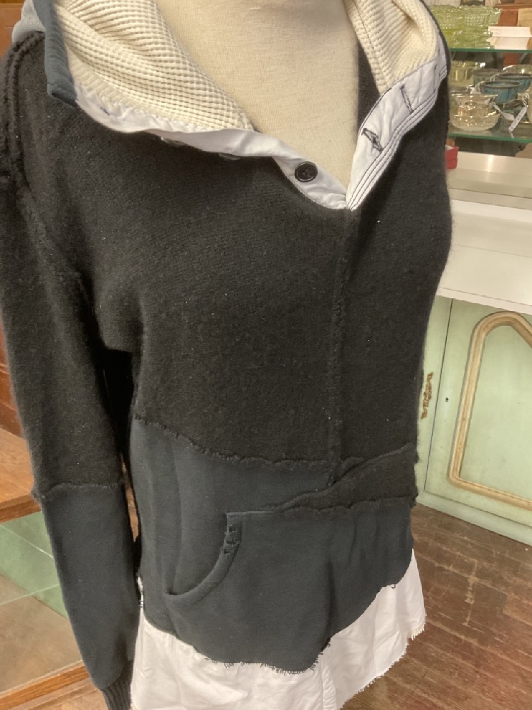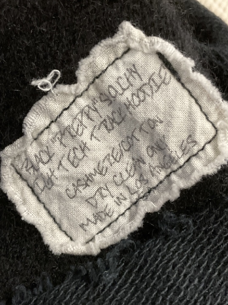 Hand signed Greg Lauren Black "Preppy" Slouchy Track Hoodie. Cotton and Cashmere. Size Large. Created 2018. Very fine condition.