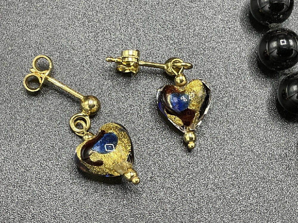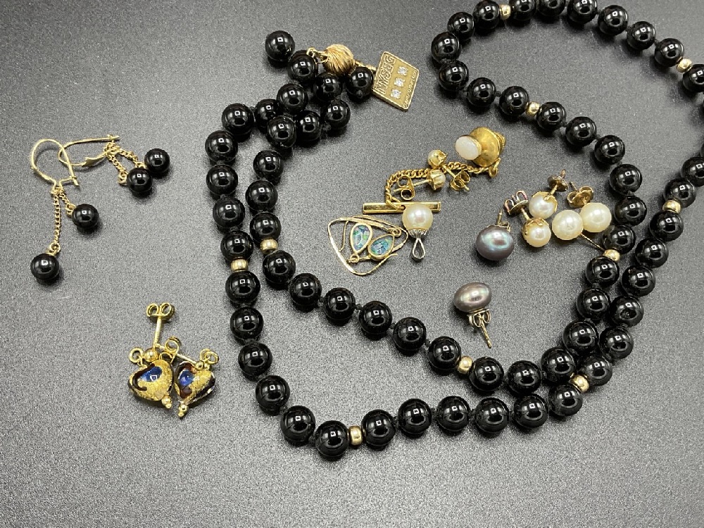 10k and 14k gold assorted jewelry group. Onyx necklace needs repair. 14K Italian glass earrings etc.
