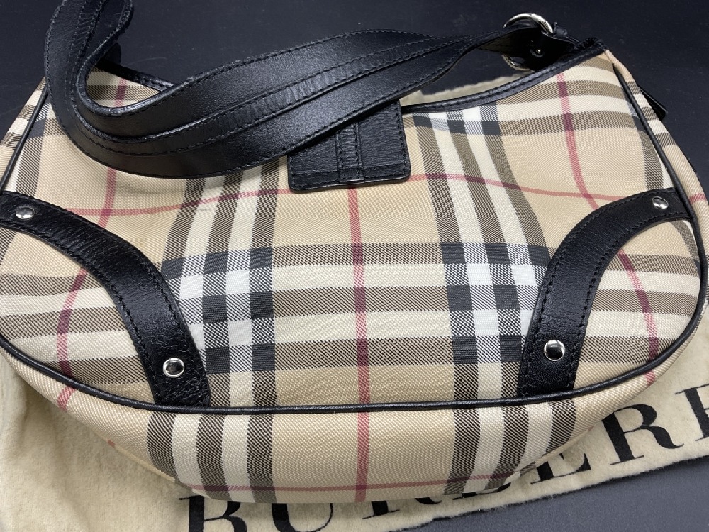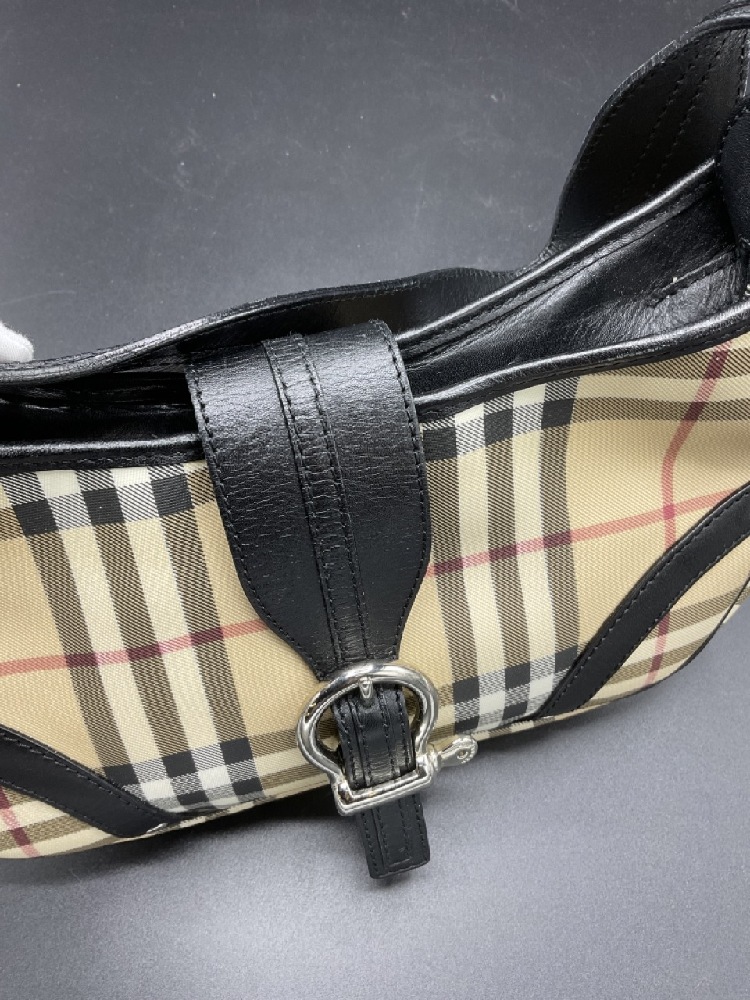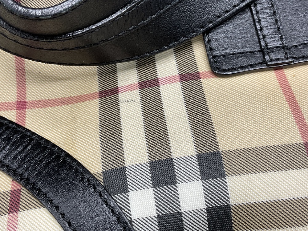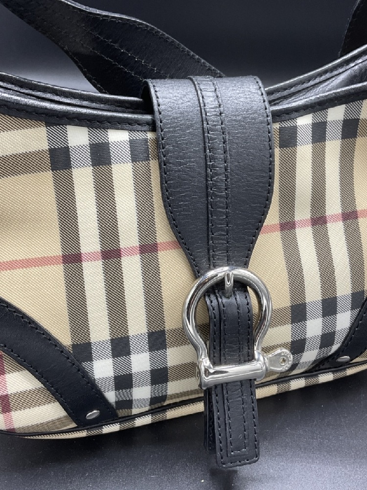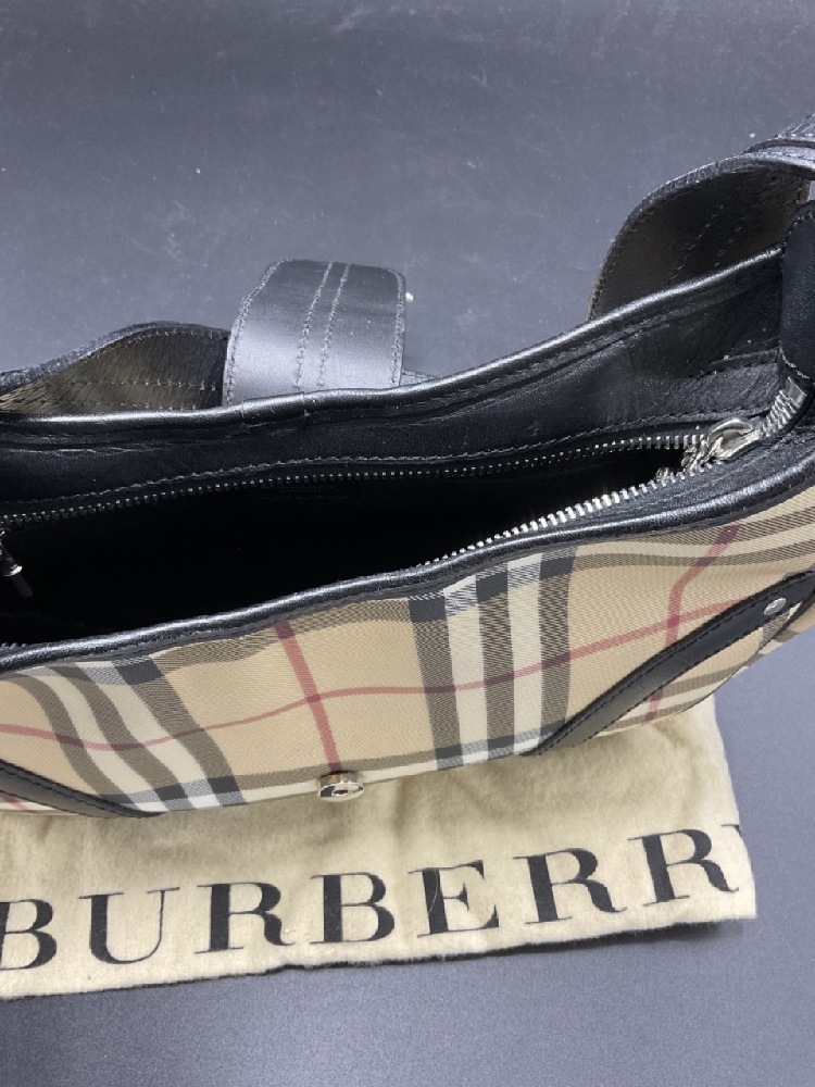 Like new Burberry black leather and signature plaid handbag. Very clean with very minor wear.