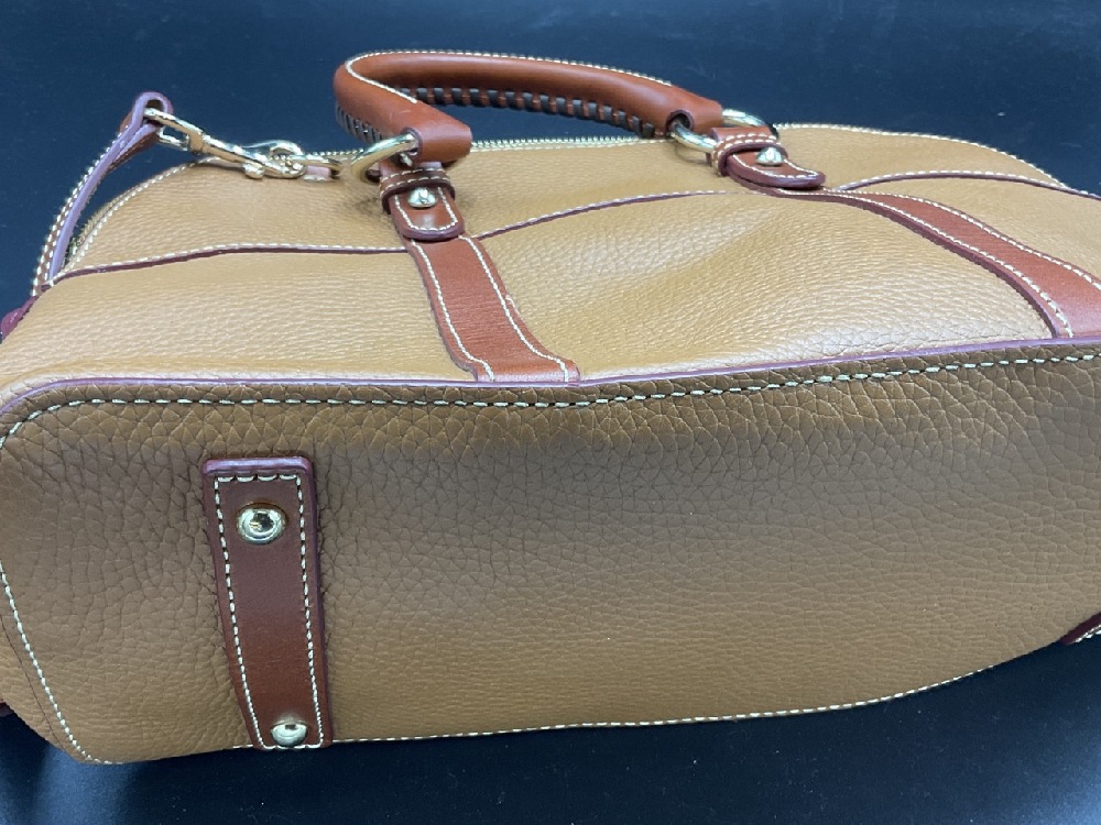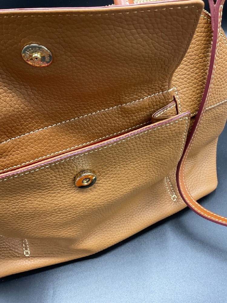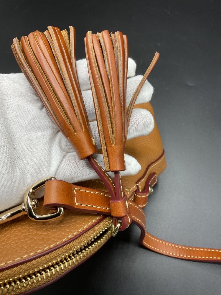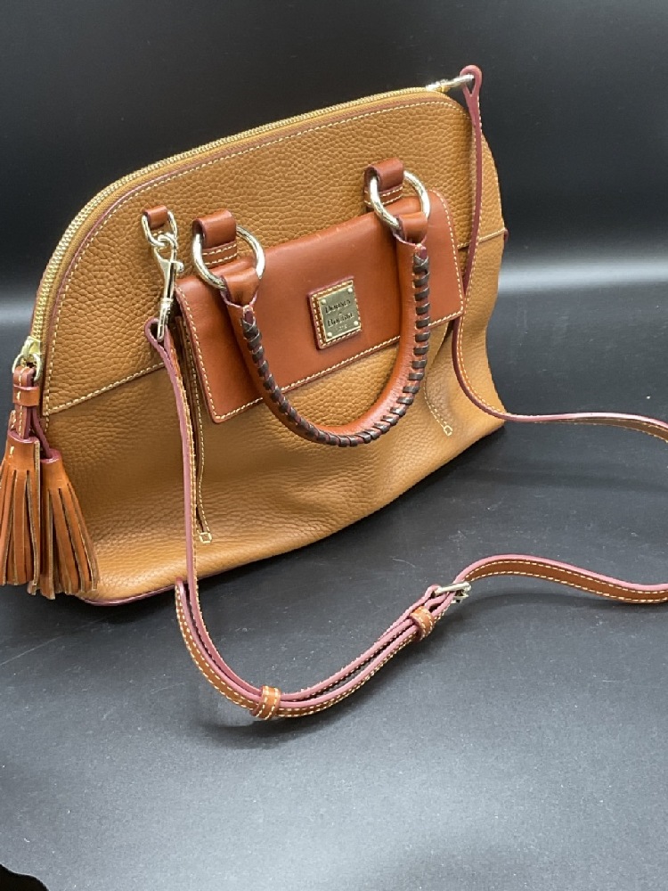Dooney & Bourke brown leather bag with tassels. Near mint condition. No smoking or odors. Very fine.