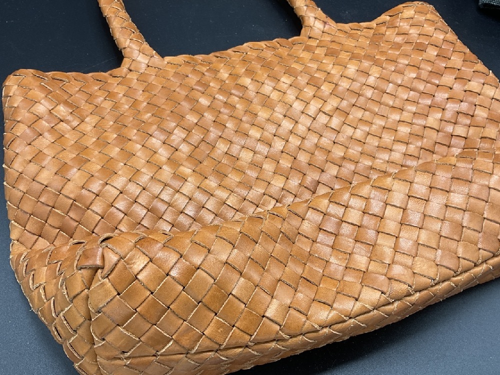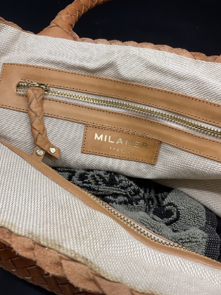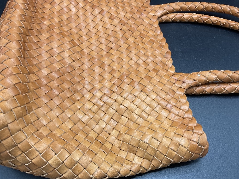 Milaner, Italian leather handbag with weave design.