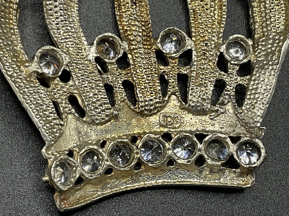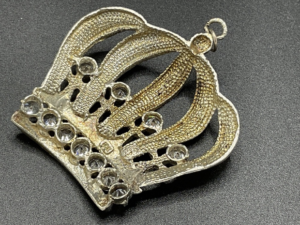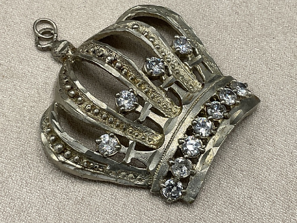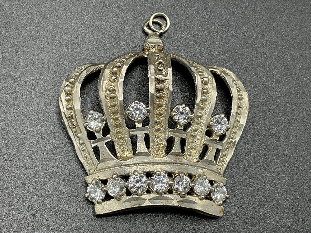 10K White Gold Large Bling King's Crown Necklace Pendant With CZ Diamond Stones.
