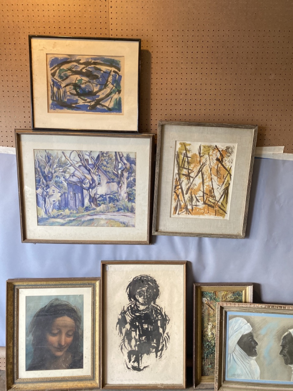 Seven (7) piece assorted artworks including Elizabeth Erlanger , 1955,1956
