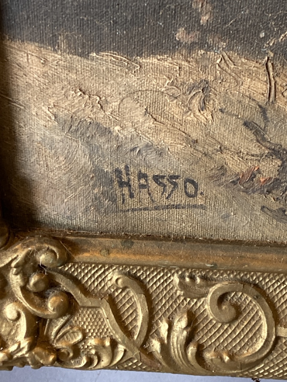 Six (6) piece art group including pastels, oils. Hasso, Fontaine (Seascape)