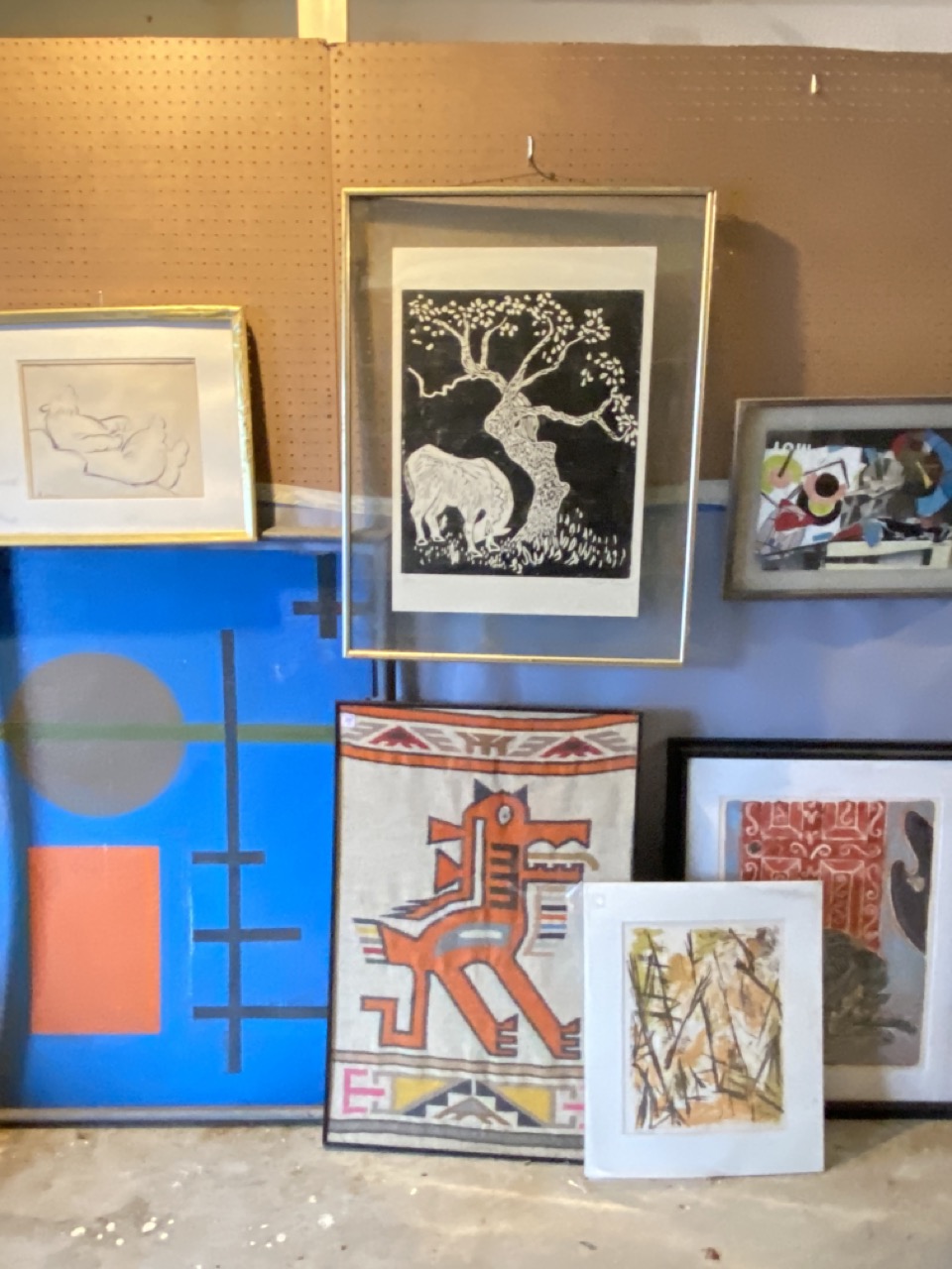 Seven (7) Piece art grouping including work by Elizabeth Erlanger.