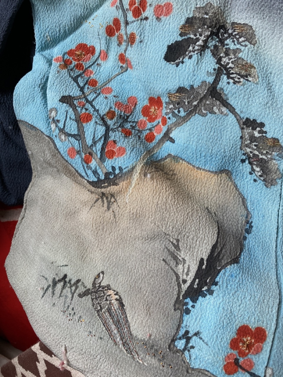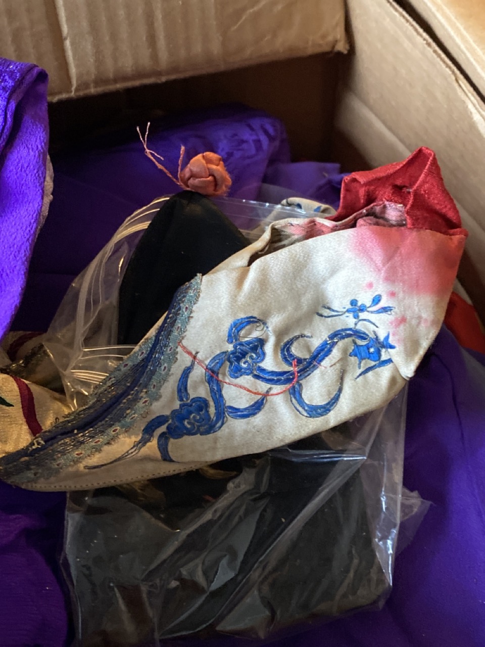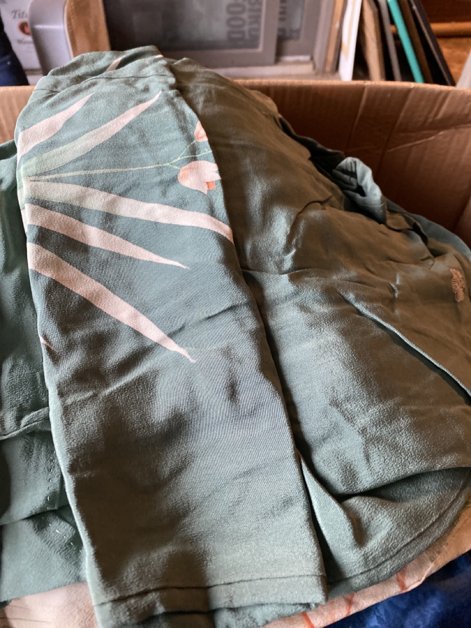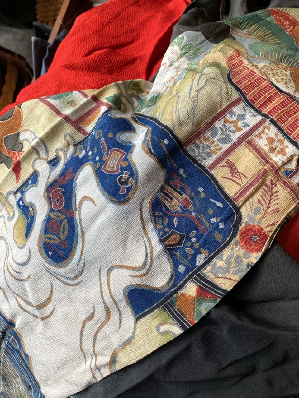 A trunk filled with old Japanese Kimonos and textiles of Asian origin.