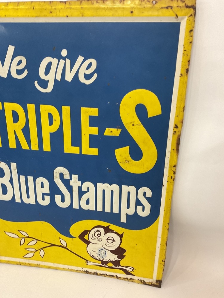 Large Triple S Blue Stamps Advertising Sign with owl.
