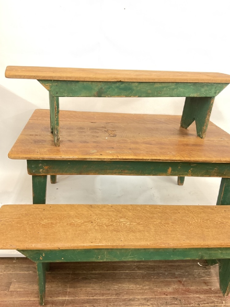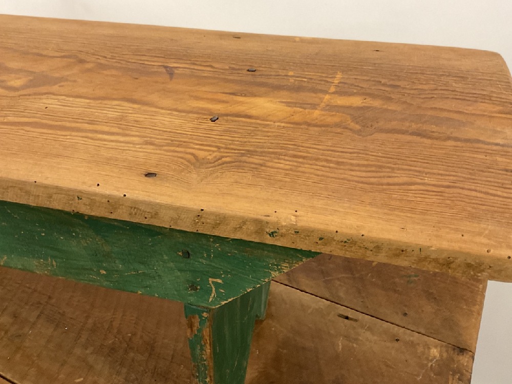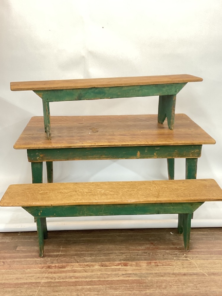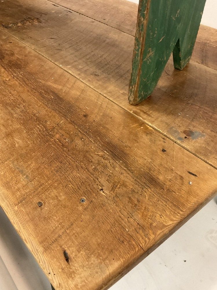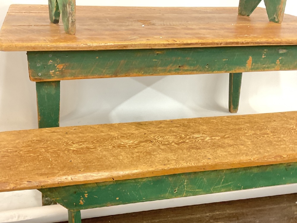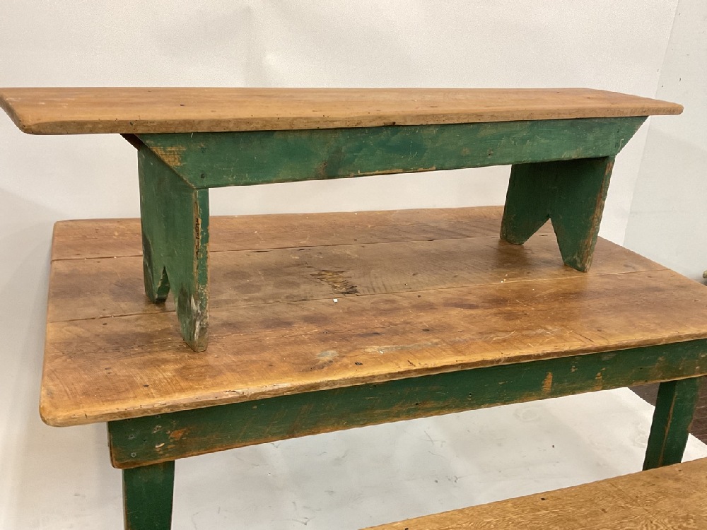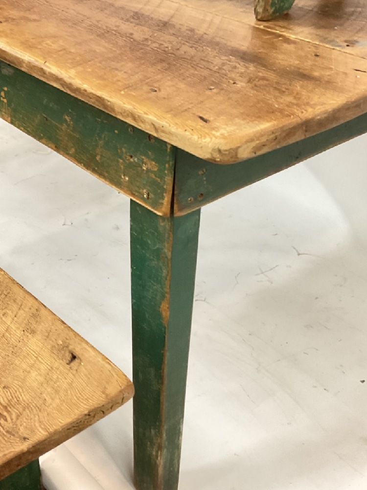 Country Farm house style table with two bench seats.