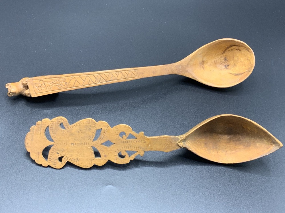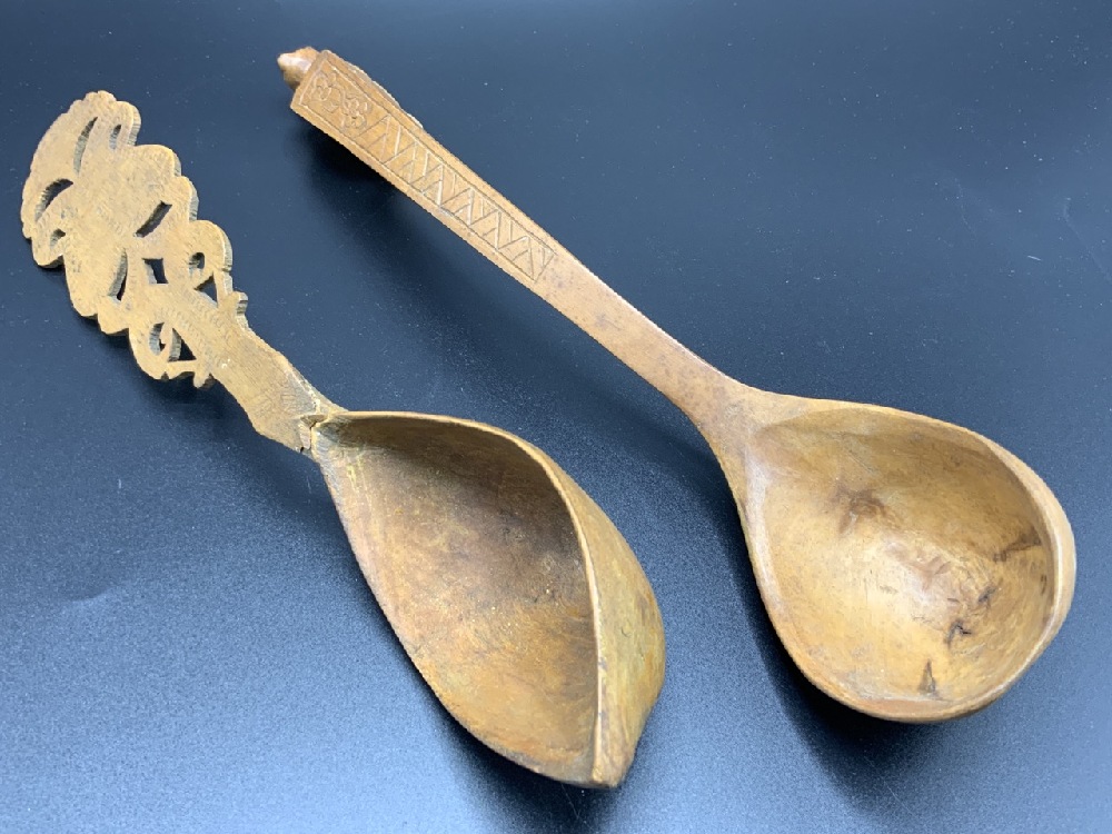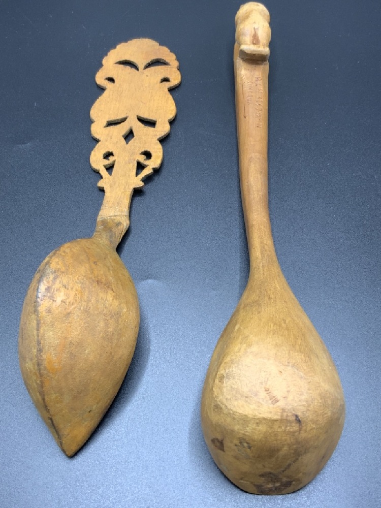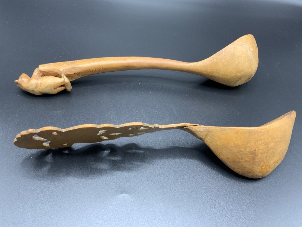 Two Eskimo Carved Wooden Spoons.