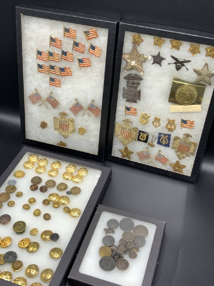 Four (4) Collector's Cases Full Of Military Medals, Buttons, Patches Etc.