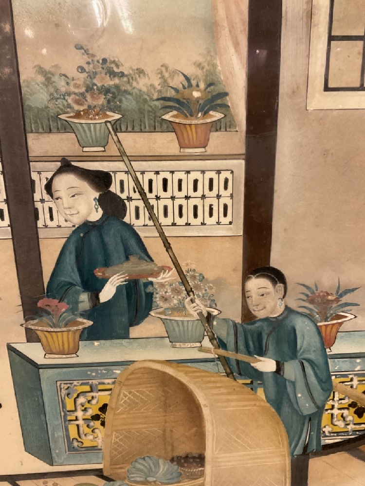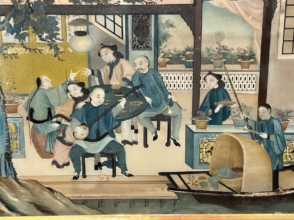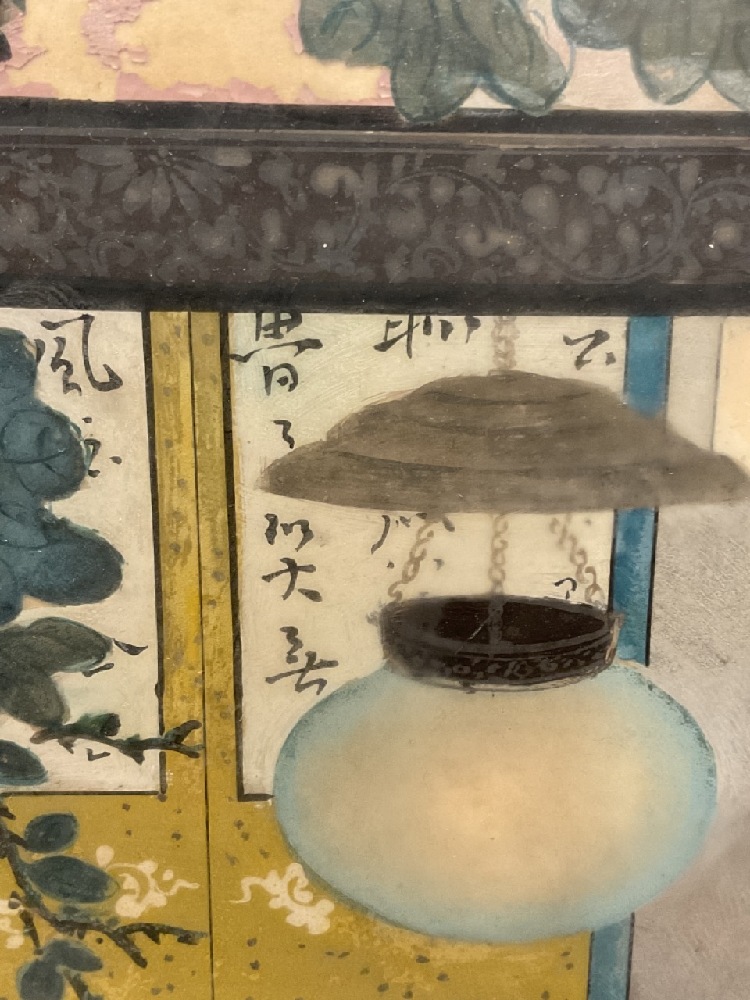 A Chinese oil painting reverse on glass.