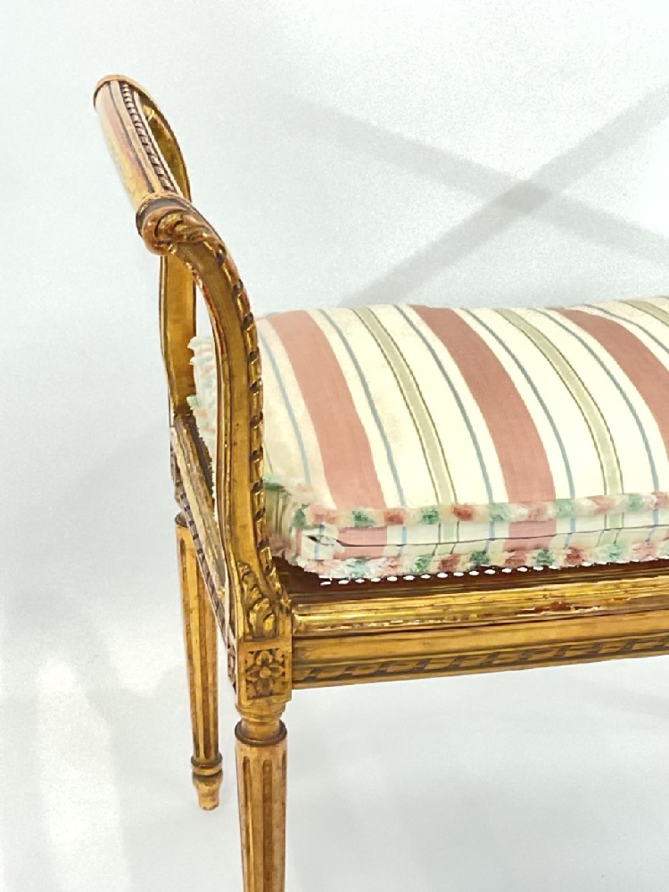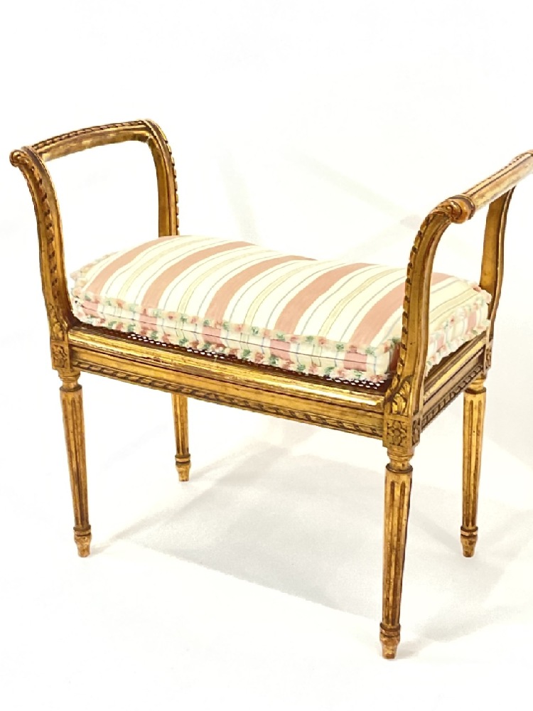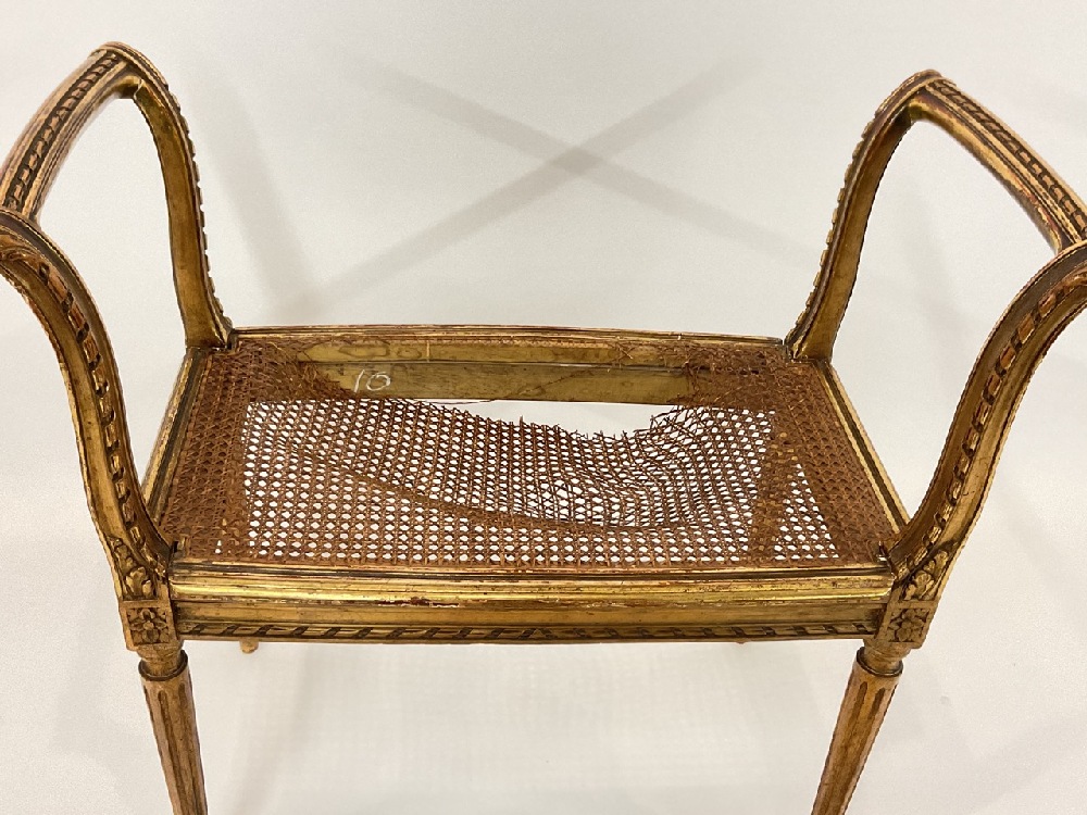 Giltwood vanity bench seat. Cane work needs repair.