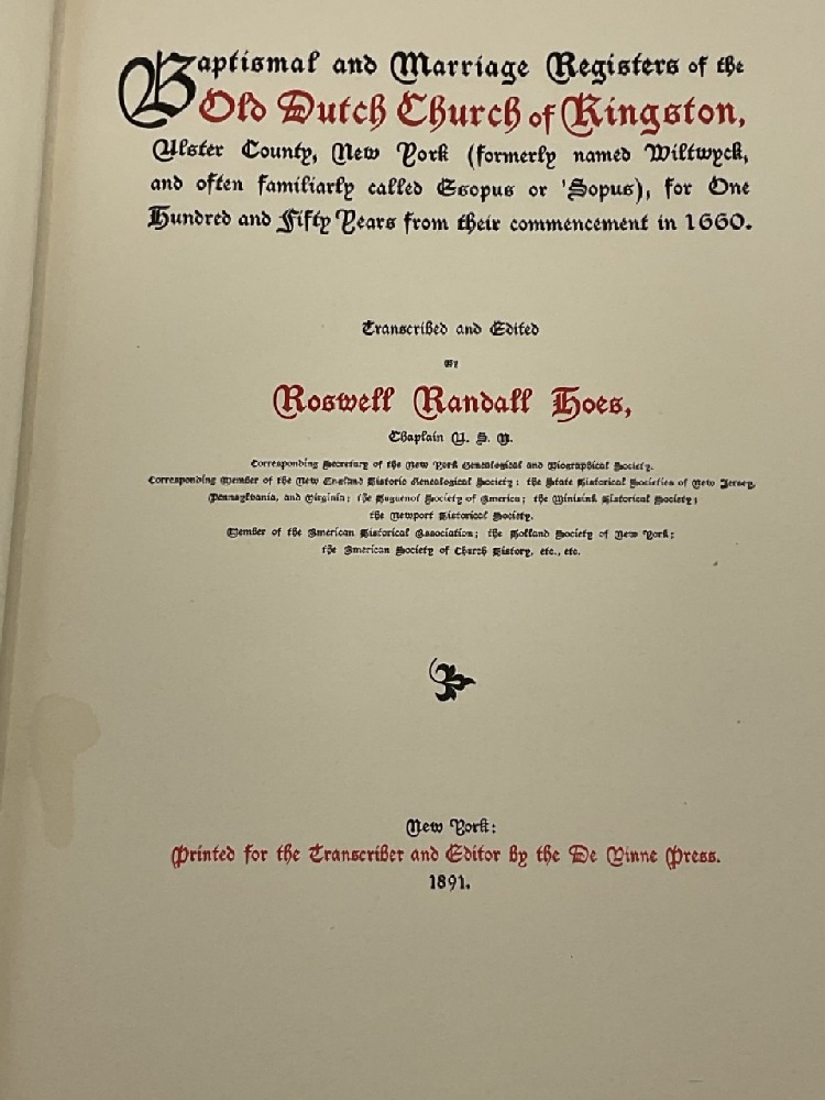 Baptismal and Marriage Registers of the Dutch Church of Kingston, NY 1616-1809. Bound.
