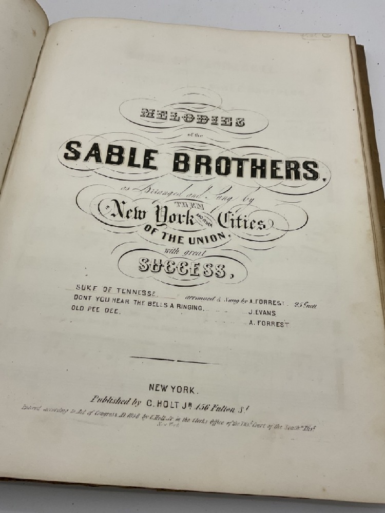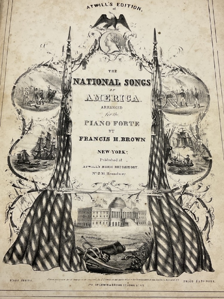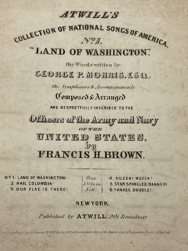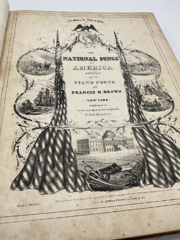 1843 Atwill's Collection of National Songs of America. Including Yankee Doodle Dandy, One Land of Washington Etc. Leather bound. Frances Brown, 1843.