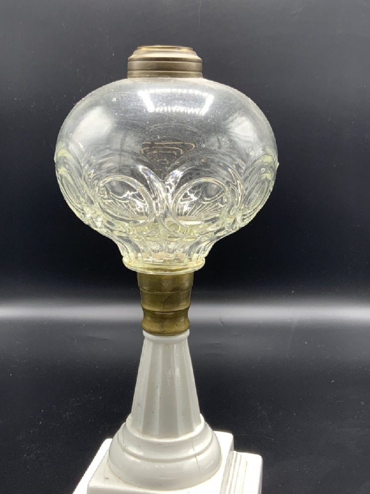 19th c. American pattern glass oil lamp.