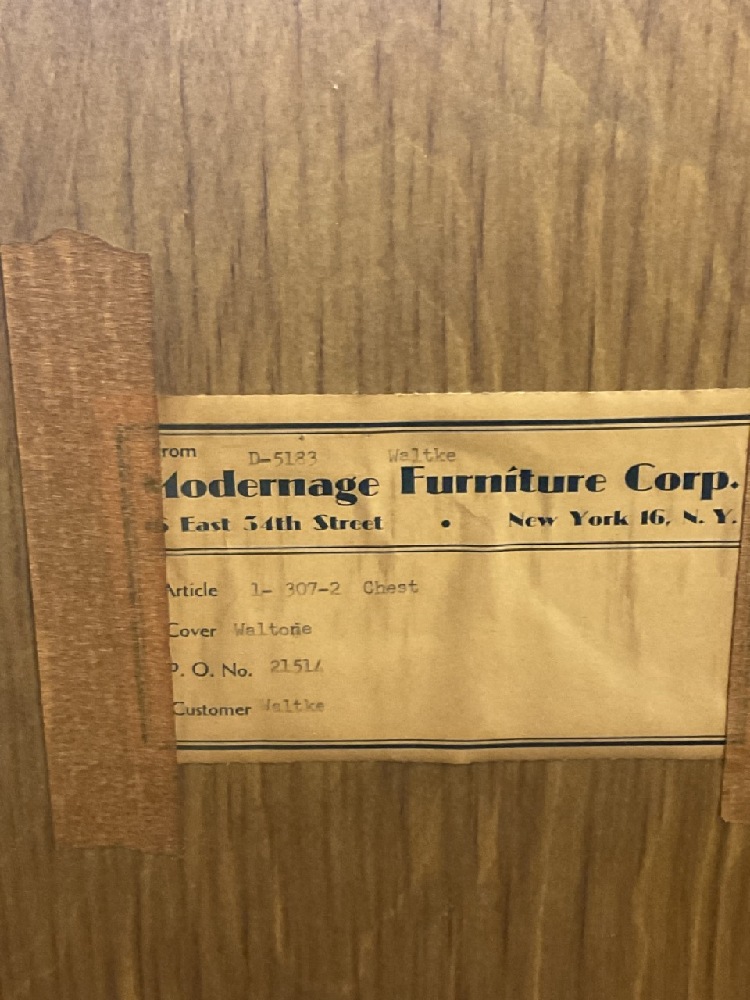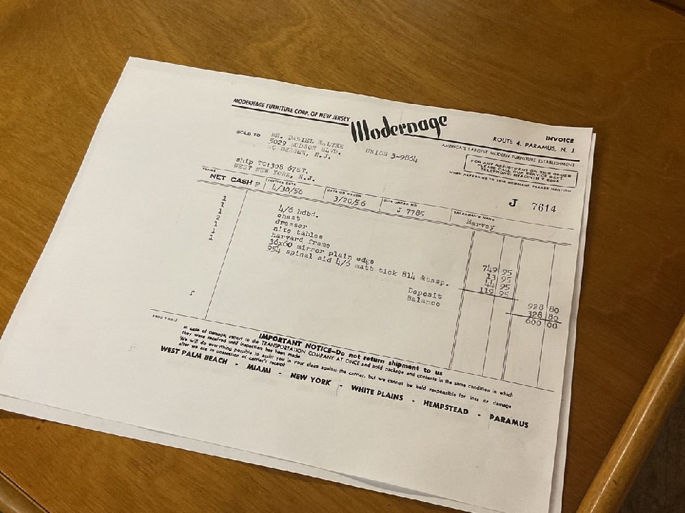Purchased from Modernage in Paramus N.J. c.1956. Copy of original receipt included.