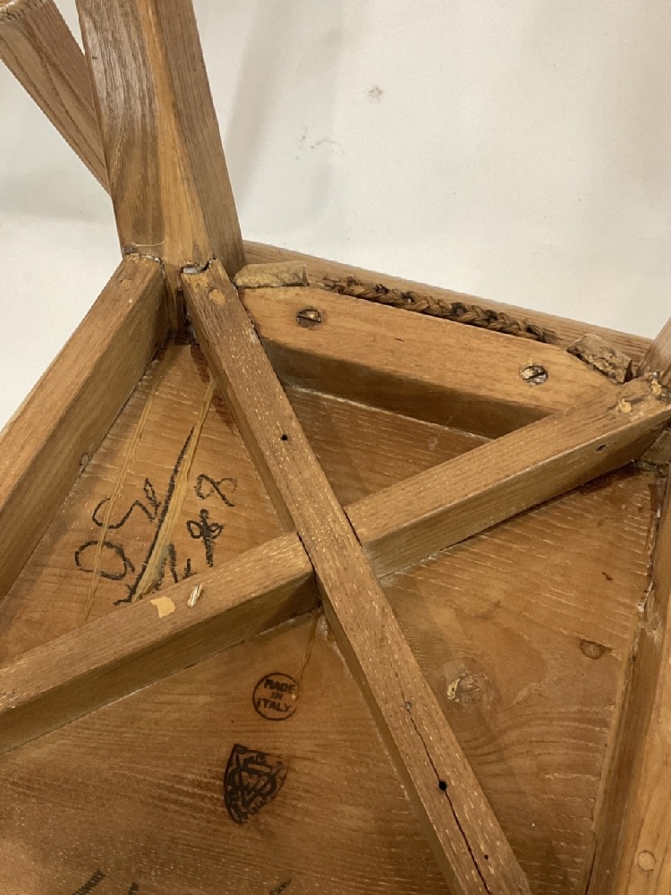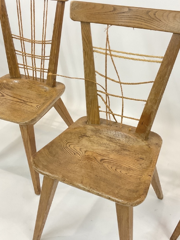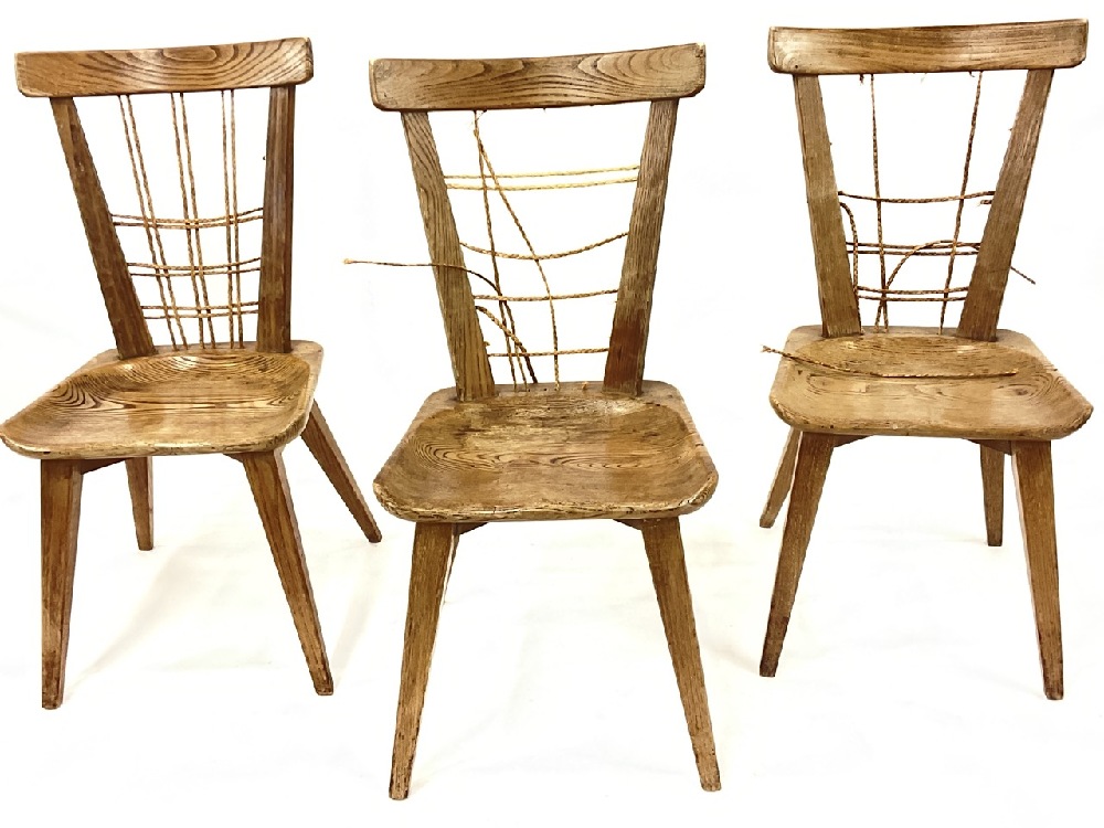 Three (3) Italian hardwood chairs signed for Giuseppe Pagano. Wear noted. to rope backs. Please see photograph preview.