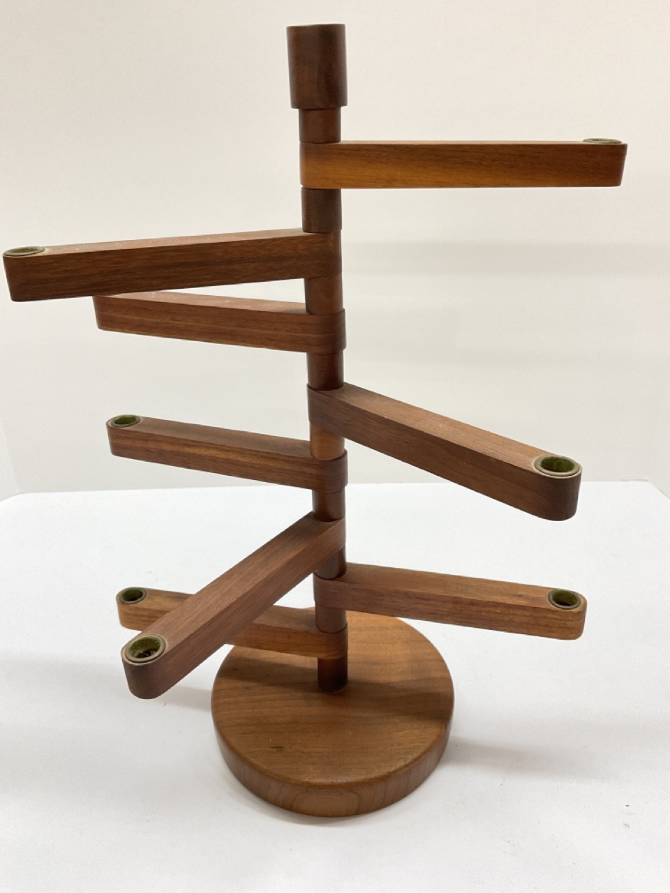 Delavan, Danish Modern teakwood candelabra. Signed at base. Delavan Designs (Denmark)Dimensions: 16" X 11"