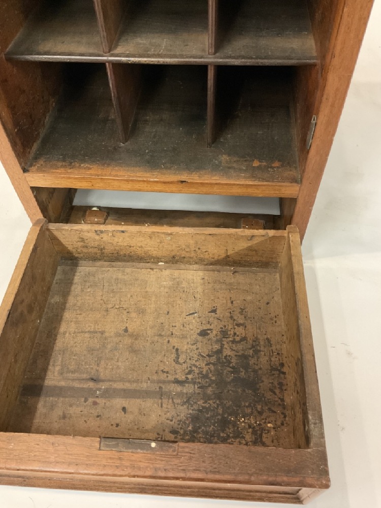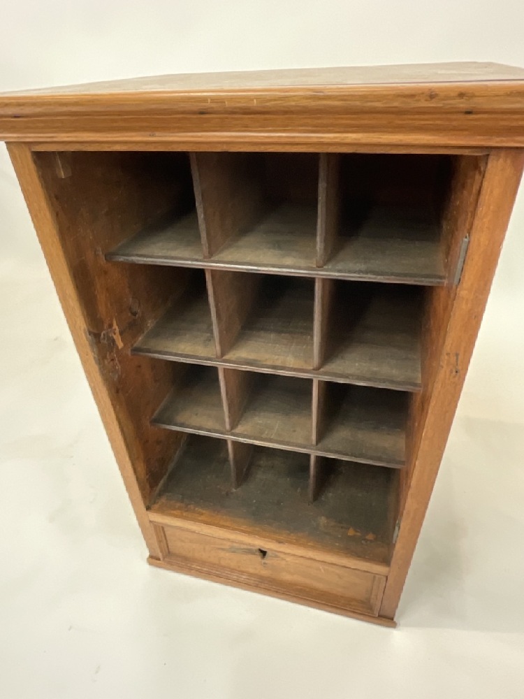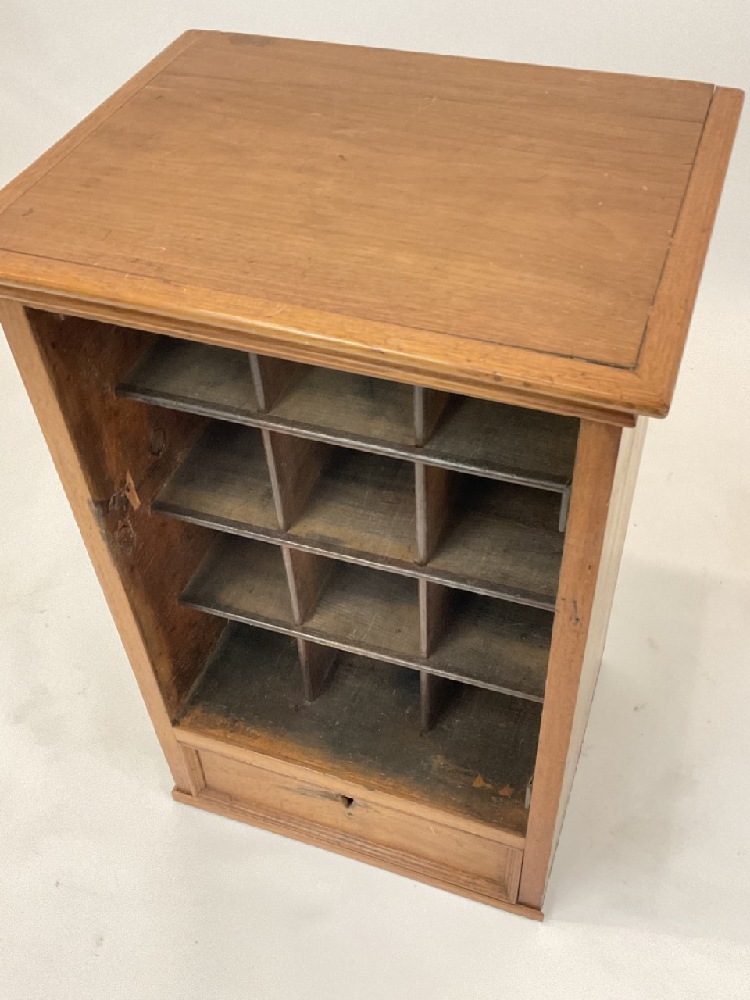 19th c. American oak table top sorting cabinet. Open front would originally had a door.